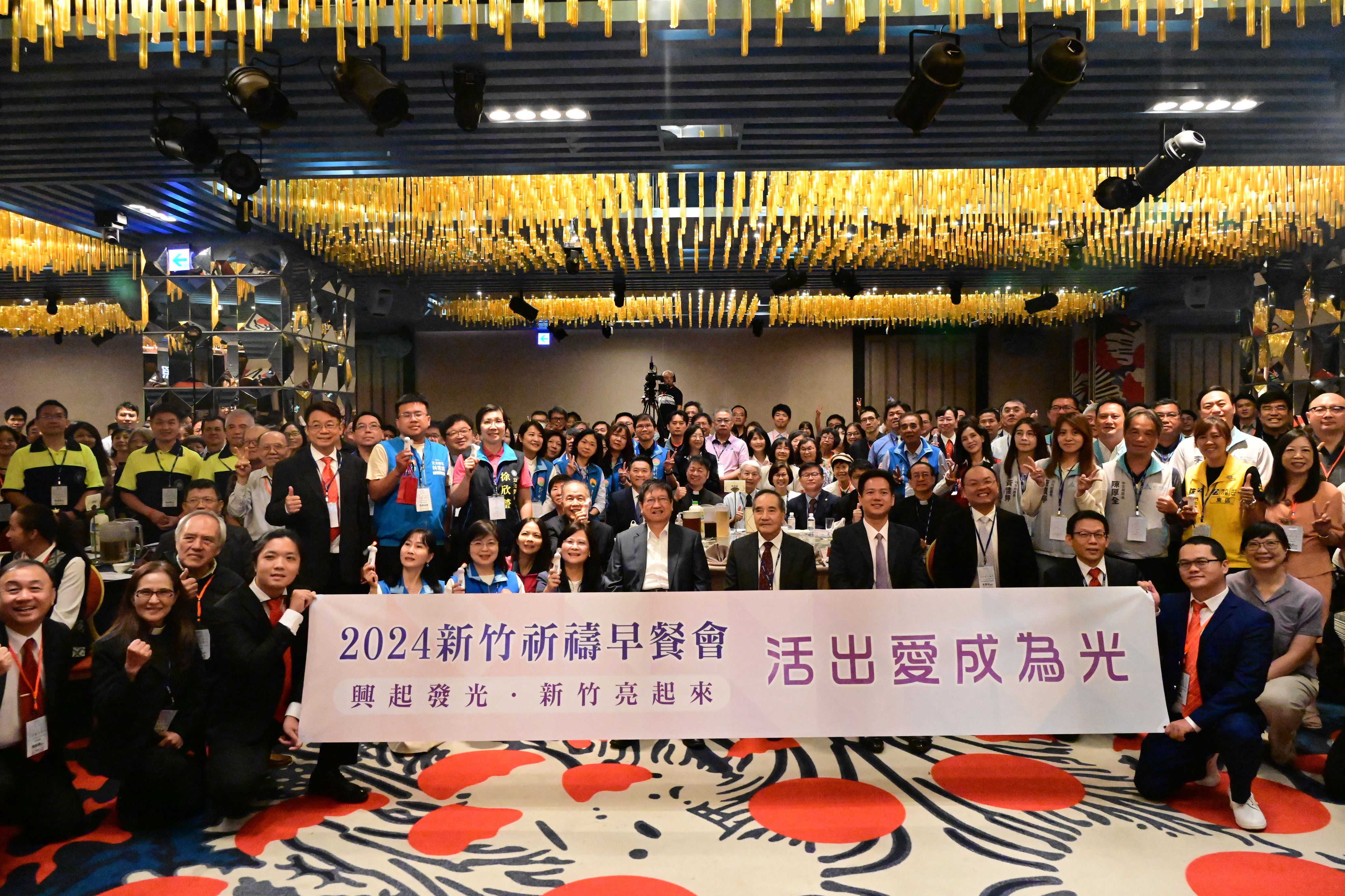 第十一屆新竹祈禱早餐會31日一早於新竹市晶宴會館舉辦,會中為家庭教育、經濟、軍警消醫護、國際城市等禱告,並由林本堅院士分享見證,楊文科與縣府多名一級主管均出席,感受祈禱早餐會的虔誠、溫暖氛圍。
