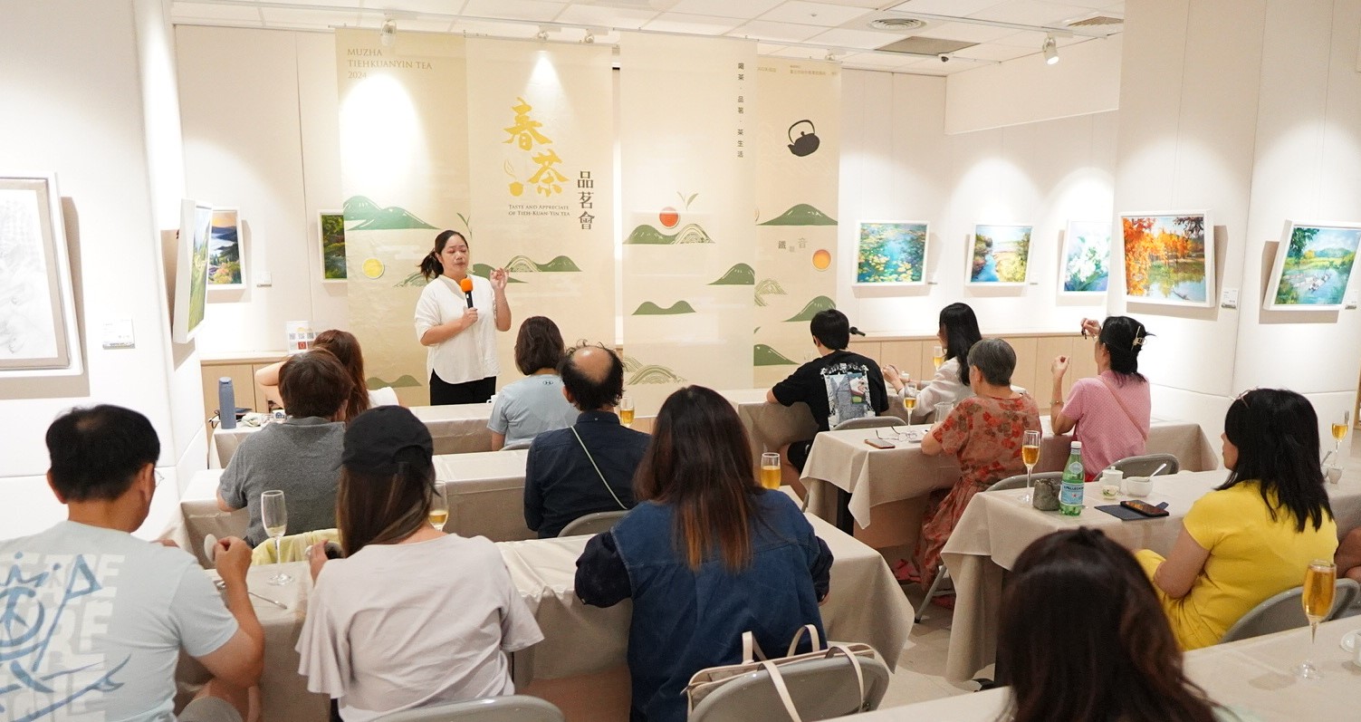 臺北市政府產業發展局與木柵區農會致力於推廣木柵鐵觀音春季茶葉,再次攜手與天母SOGO跨界合作,於8月31日舉辦「冠軍茶品茗會」,特別邀請110年木柵冬季優良鐵觀音茶特等獎得主張欣柔專業茶師主講,帶領民眾品嘗鐵觀音冠軍茶之茶品特色、滋味及品茗方式,特別選用「113年木柵春季優良鐵觀音比賽」優良鐵觀音茶頭等獎以上之茶品,透過冷泡、熱沖兩種方式展現鐵觀音茶味濃而醇厚的獨特茶韻,搭配辨茶形、沏湯色、聞茶香、品滋味、觀葉底,透過「辨、沏、聞、品、觀」讓茶友們透過五官體驗鐵觀音茶的甘醇滋味,更加認識木柵鐵觀音茶,深刻感受濃郁芬芳的茶山文化,並體驗一場木柵鐵觀音的茶藝之旅。