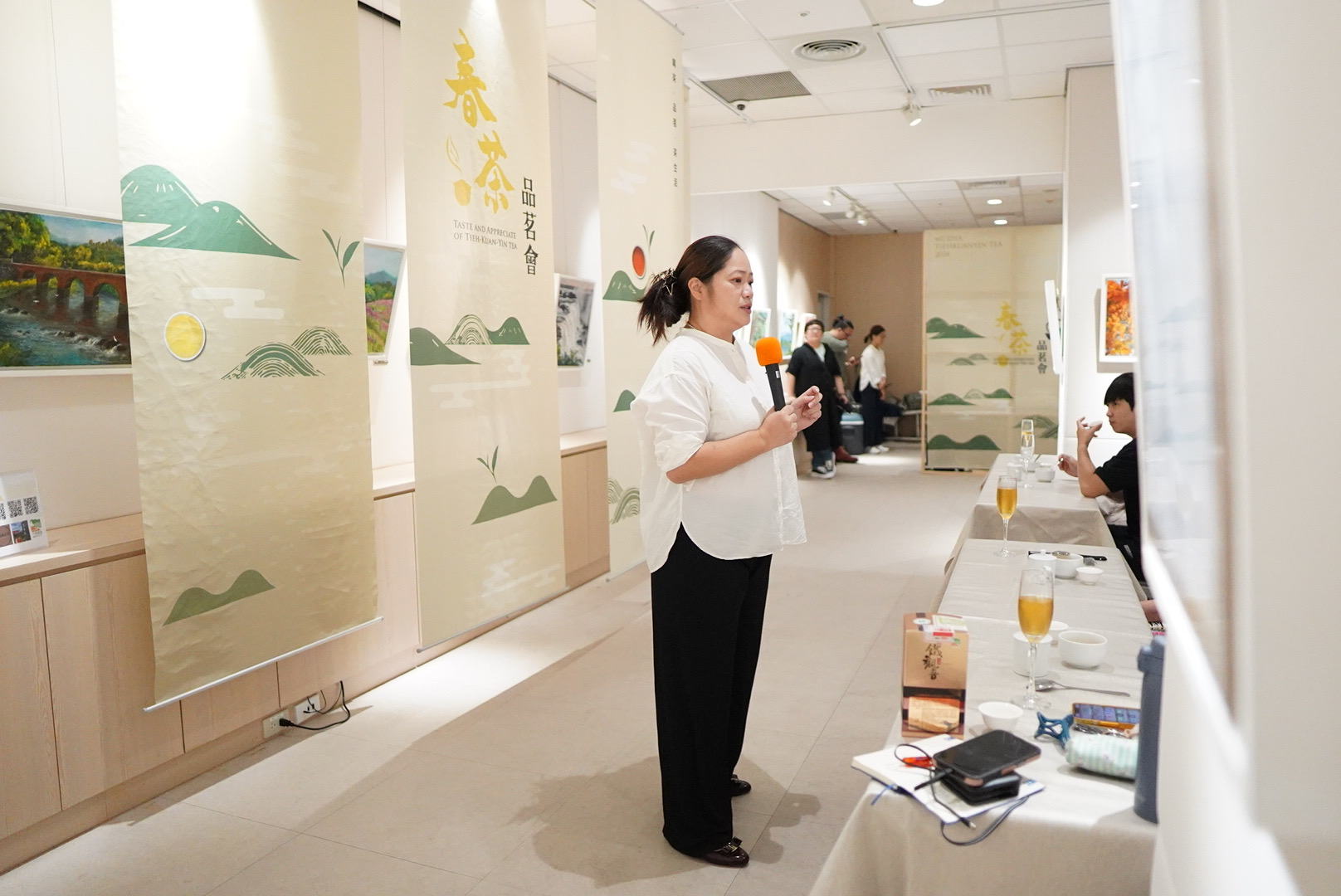 張欣柔專業茶師主講,帶領民眾品嘗鐵觀音冠軍茶之茶品特色、滋味及品茗方式 圖/木柵區農會提供