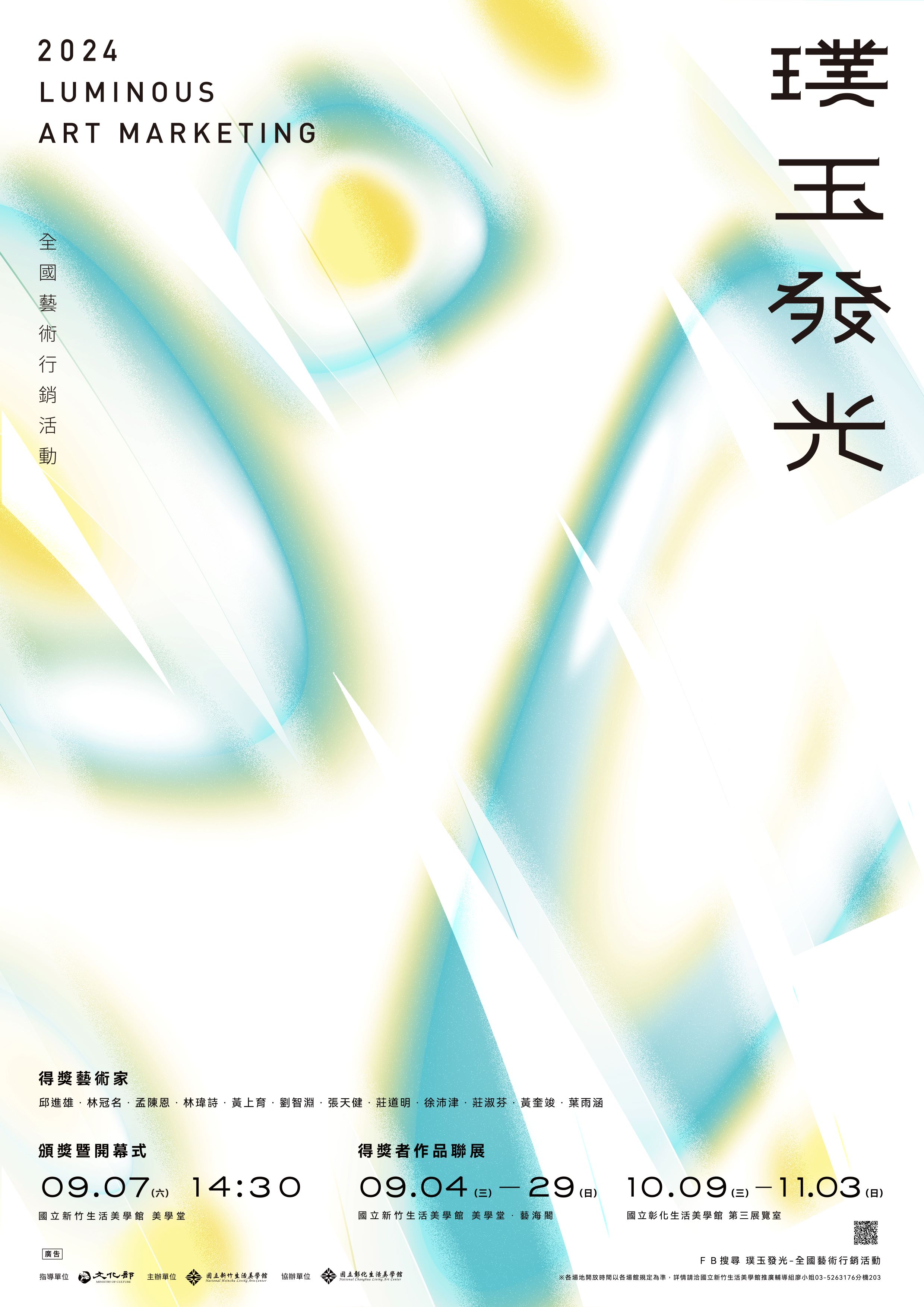 文化部所屬國立新竹生活美學館每年辦理的「璞玉發光-全國藝術行銷活動」今年邁入15年,9月7日於「新竹公會堂」舉辦頒獎暨開幕式,公開表揚12位得獎者。