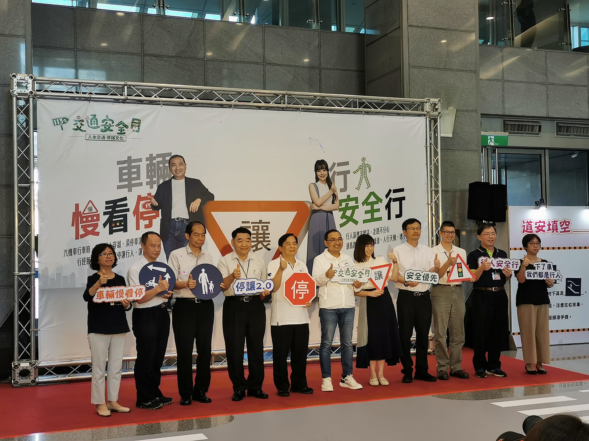 為響應交通安全月,落實扎根「停讓文化」,新北市政府新聞局今(9)日於新北市政府1樓大廳舉辦「新北市交通安全月『停讓文化2.0』記者會及展覽活動」,由市長侯友宜率新北市道安會報相關局處共同出席,宣導「車輛慢看停.行人安全行」,呼籲市民一起重視交通安全守法觀念。