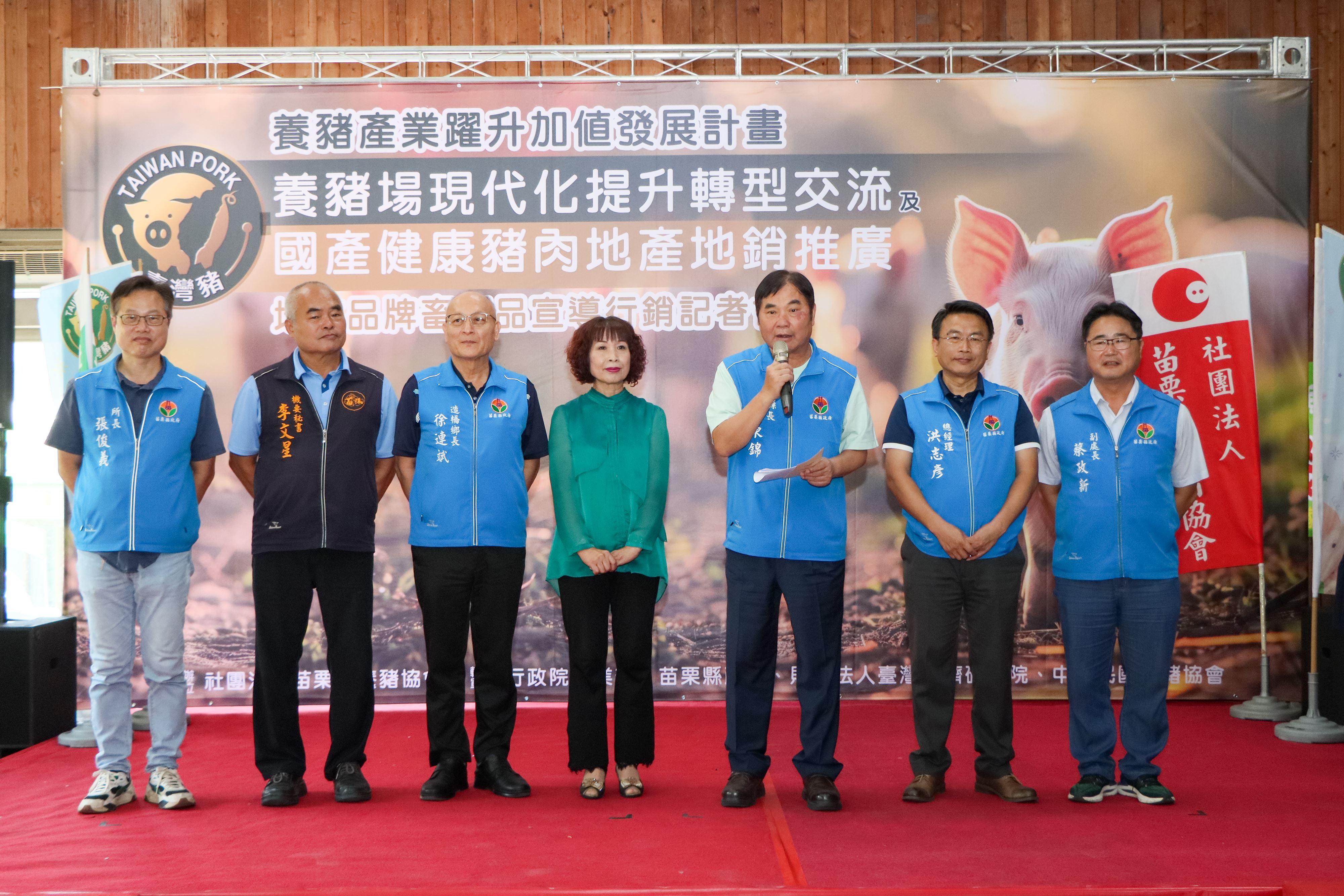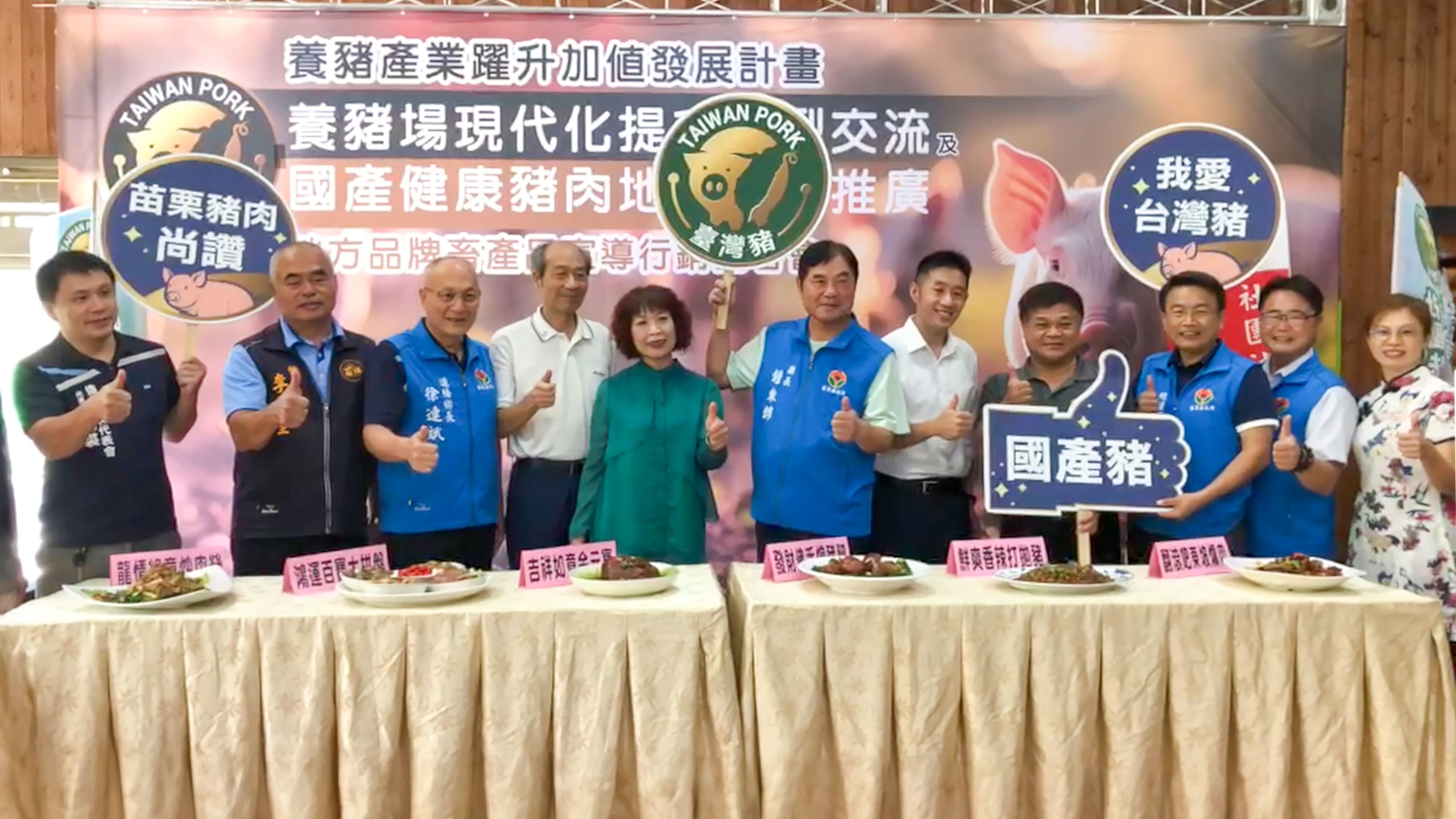 苗栗縣養豬協會於11日上午在造橋苗翔牧場舉辦了「養豬場現代化提升轉型交流暨國產健康豬肉地產地銷推廣地方畜產品行銷成果記者會」。活動內容豐富,包括成果分享、有獎問答及DIY手作體驗,並提供國產豬肉試吃。現場還有多種國產豬肉料理,讓參加者在吃、喝、玩、樂中深入了解養豬業的轉型成果。縣長鍾東錦、農業部畜牧司技正廖偉喆、中央畜產會組長馮誠萬及苗栗縣養豬協會理事長廖秀紅等地方代表共同出席。
