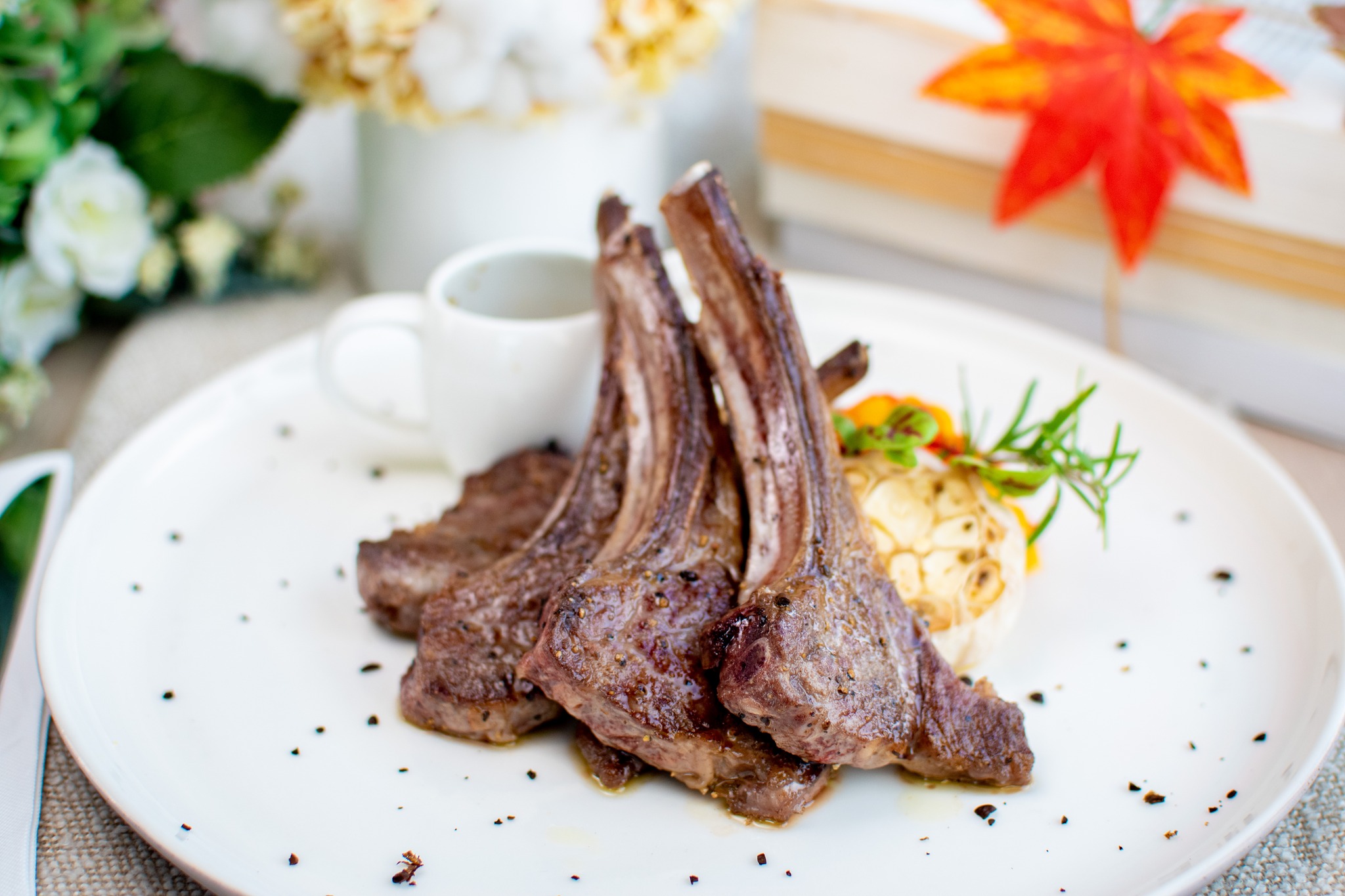 ▲令人垂涎的「紐西蘭產法式羊排」,主廚以醇厚的咖啡風味為基底,結合羊排肉汁,製成香氣四溢的咖啡風味羊肉汁來提味。(圖-將捷金鬱金香酒店提供)