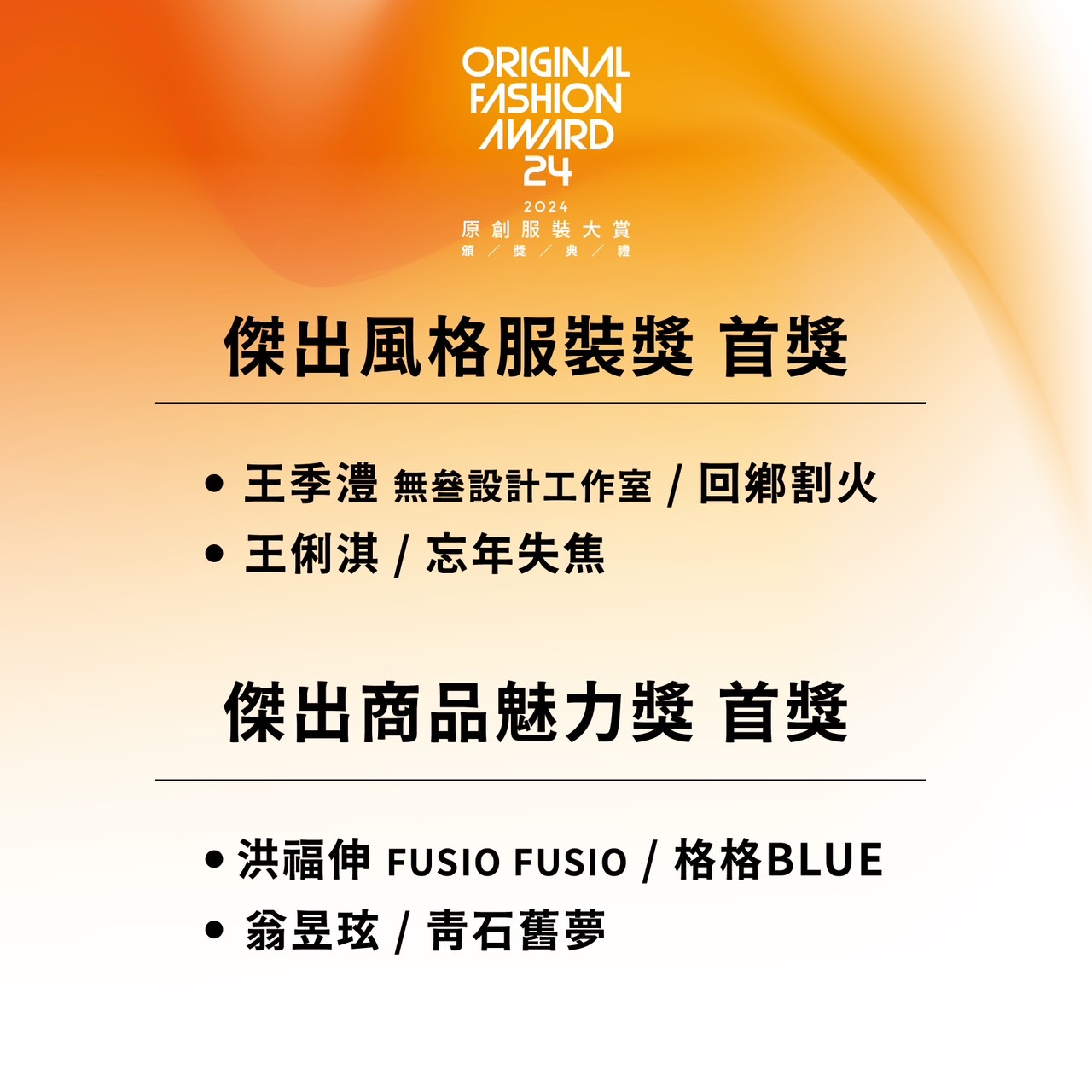 圖說:「2024原創服裝大賞頒獎典禮」得獎名單