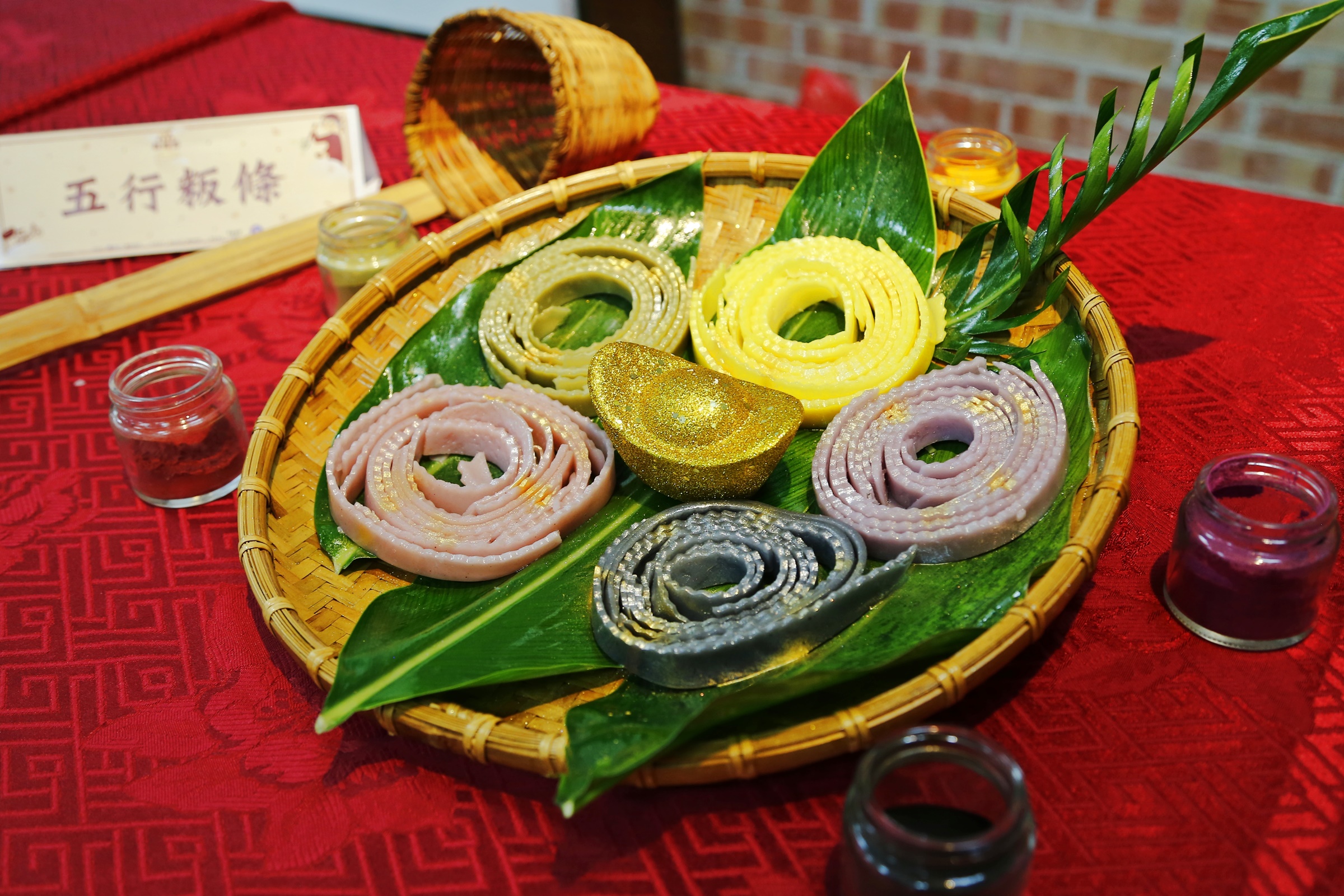 由嘉盛社區及苗農食品加工科學生共同創新研發的「貓裏五行粄條」 圖/苗栗市公所提供