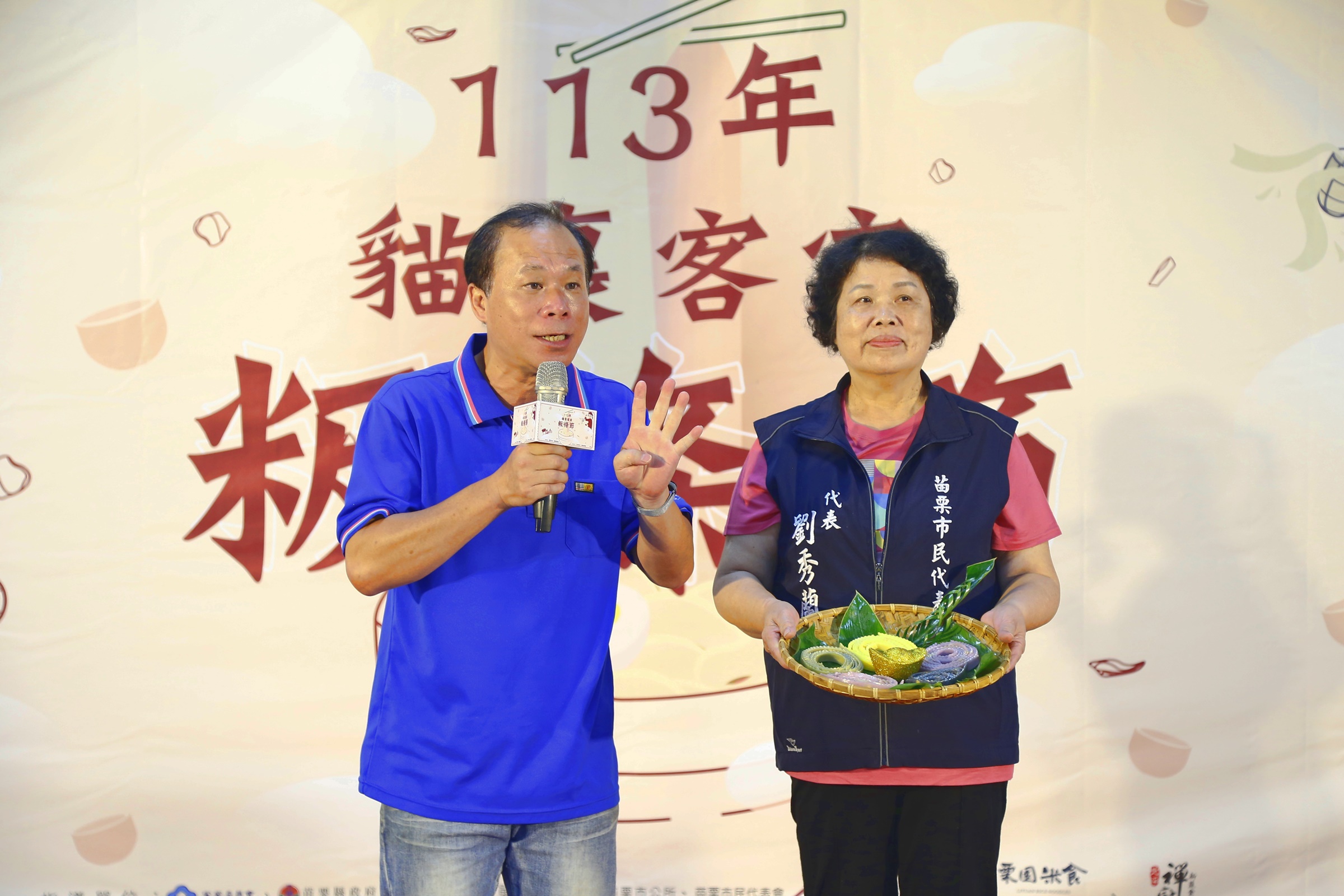 會中並預告「2024貓裏客家粄條節」活動,當天將由嘉盛社區發展協會總幹事張永昌展示帶領苗栗農工食品加工科學生利用薑黃、紫心地瓜、紅麴、抹茶及竹炭創新研發的「貓裏五行粄條,色澤相當吸睛。