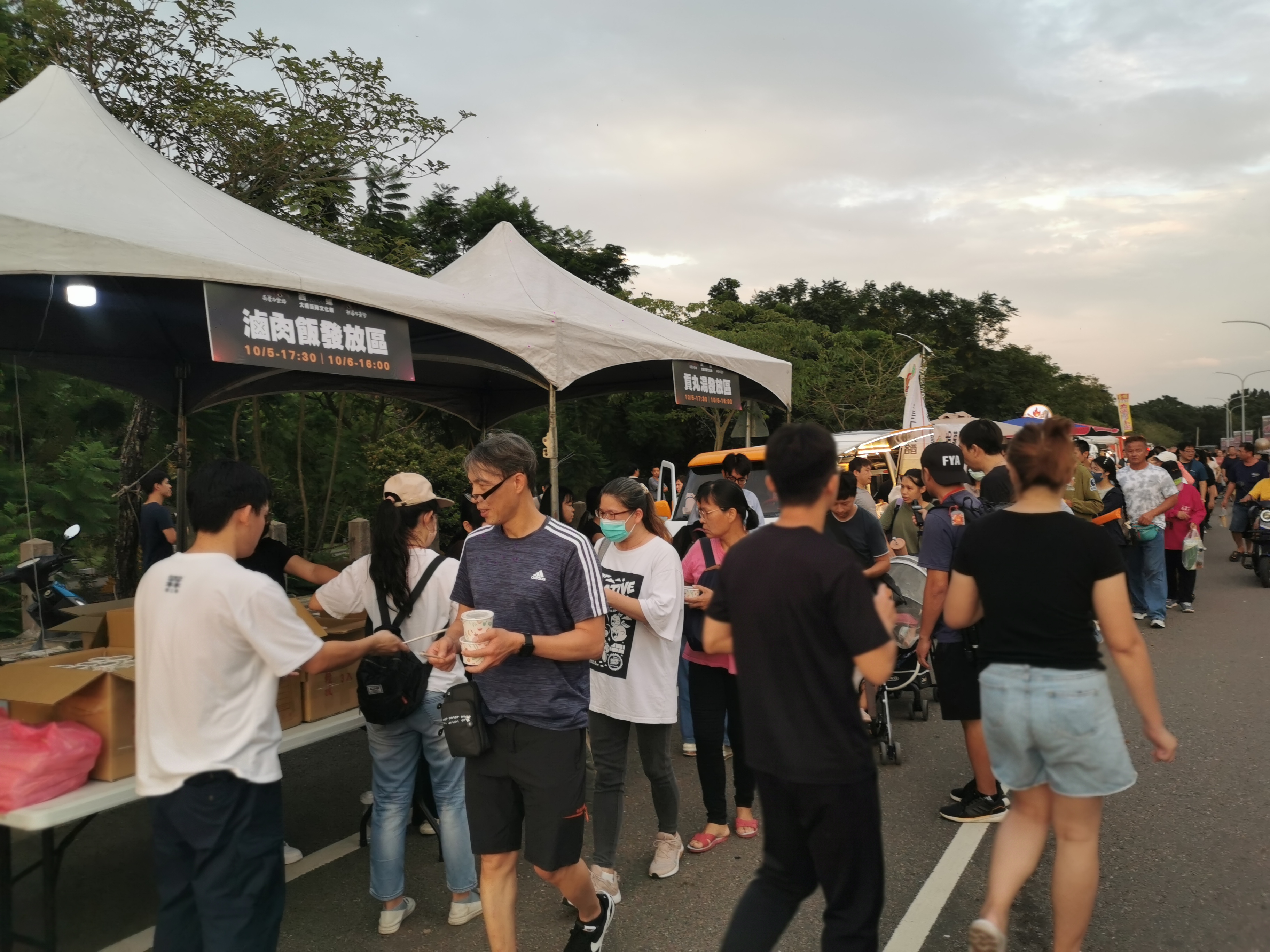現場民眾排隊兌換悠遊卡、充氣螢光棒與露營折疊椅,現場非常熱絡(數量有限送完為止)。 文觀處長陳璧君表示,除了精彩活動與限量宣導品外,還有來自雲林在地優質豬肉與米香美食供民眾現場享用,雲林縣肉品市場股份有限公司以及西螺鎮農會將於活動二日現場提供1000份魯肉飯及貢丸湯供民眾免費享用,活動首日民眾紛紛排隊領取享用。