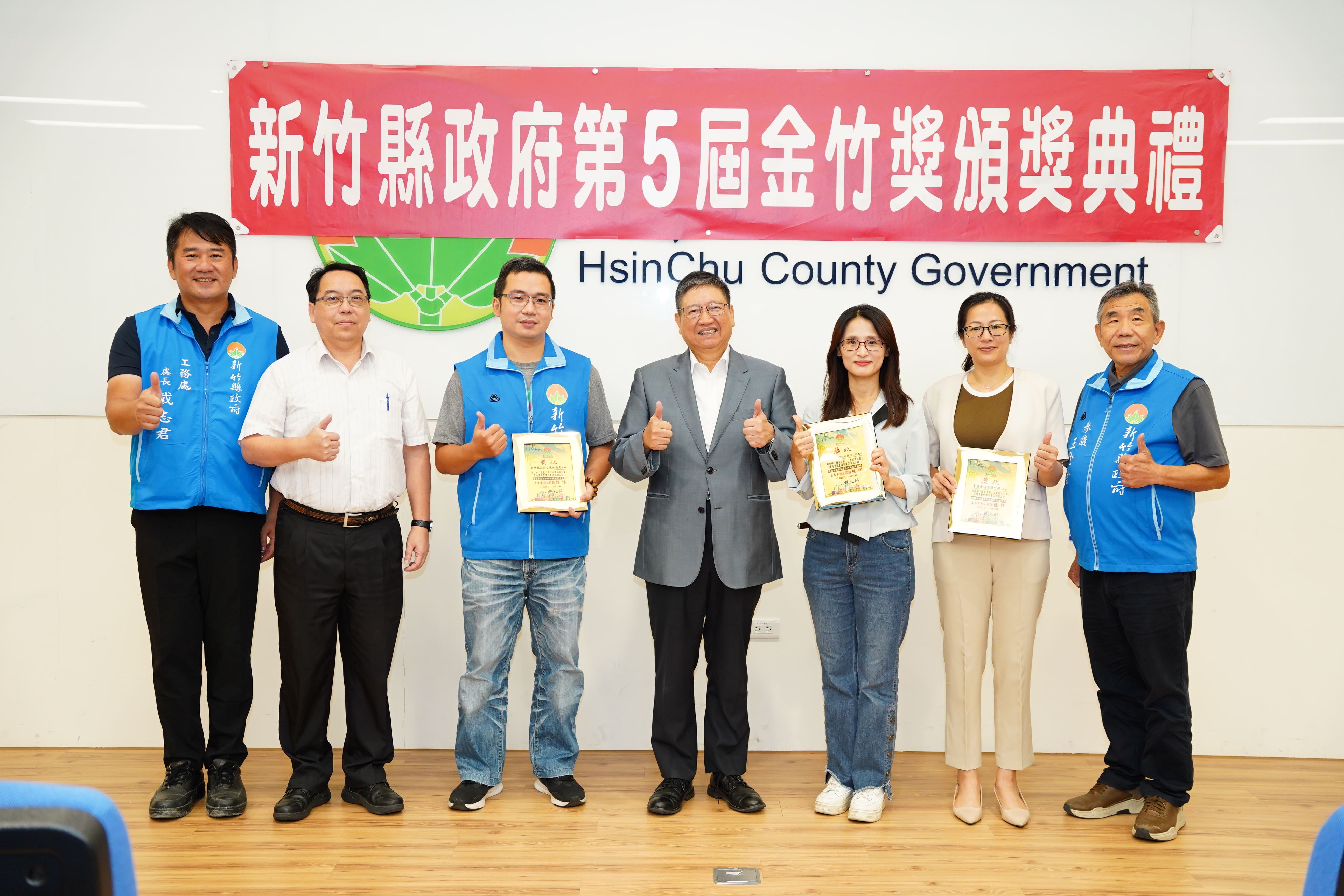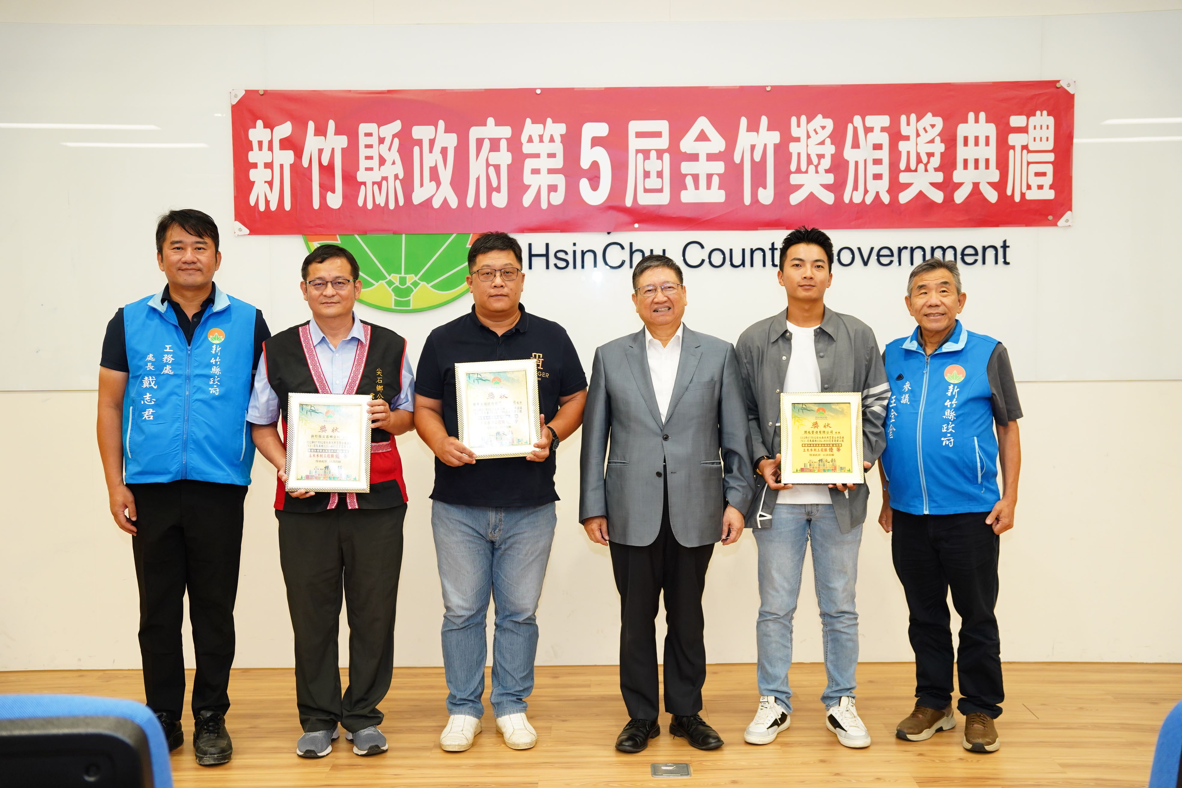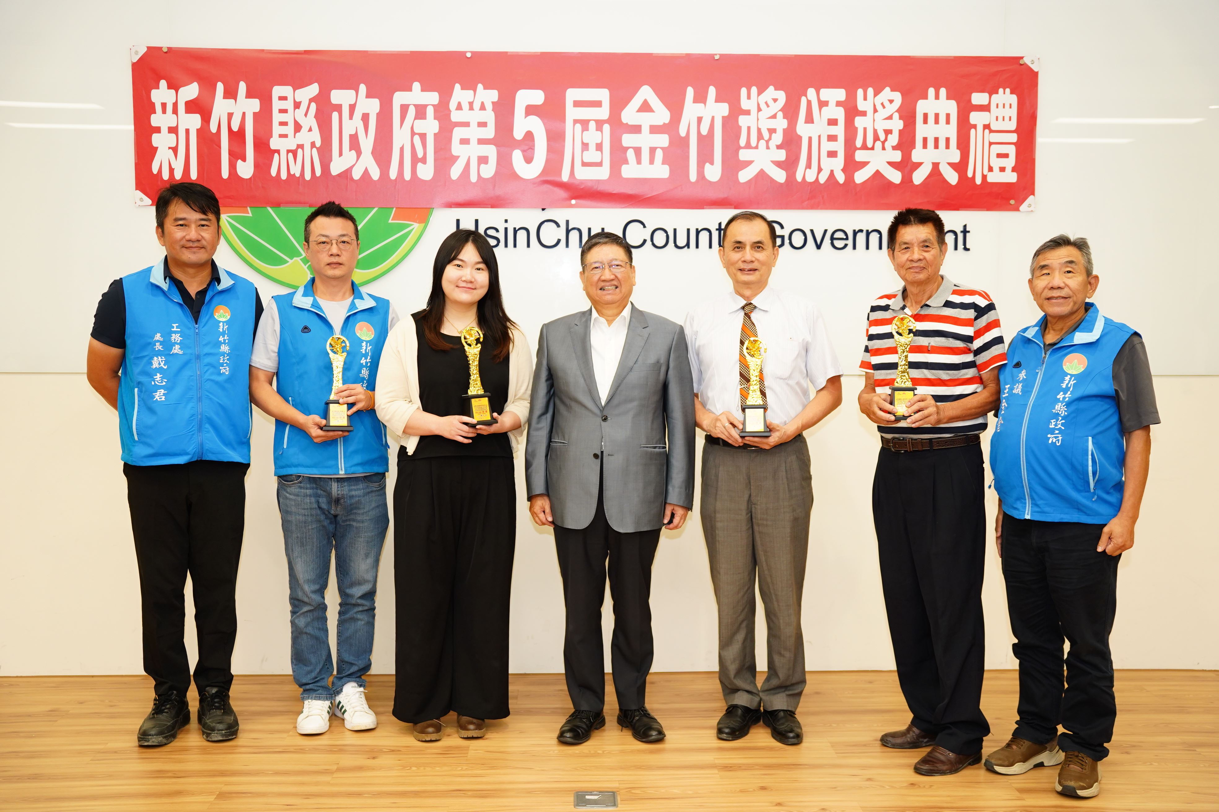 為提升公共工程品質,新竹縣政府比照中央工程會「金質獎」,辦理優良公共工程「金竹獎」,今年邁入第五屆,得獎名單出爐,達參選門檻共50件,其中16件參選,共13件工程獲獎。五峰鄉白蘭溪古道再造工程、竹北市嘉豐國小校舍暨地下停車場興建工程及縣道122線(28.5K)5月4日大雨災害復建工程獲特優,縣長楊文科今(8日)頒獎表揚,期許廠商用心認真做,縣府絕對全力支持,攜手提升公共建設品質。
