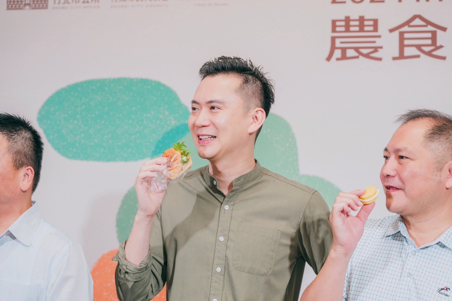 鄭朝方表示,本次特別邀請竹北在地知名甜點店-MANO MANO,結合在地食材推出農食餐點組,內含漢堡,佐醬為東海萊姆園的新鮮果汁;另有高級下午茶甜點馬卡龍。市民朋友可於網路,以100元預購「農食餐點組」,還加贈精緻城市杯盤組及佰元市集消費劵,超值組合一千份在網路才曝光不到12小時秒殺,僅剩不到100組,詳細活動資訊及報名網址: https://reurl.cc/QExMEb