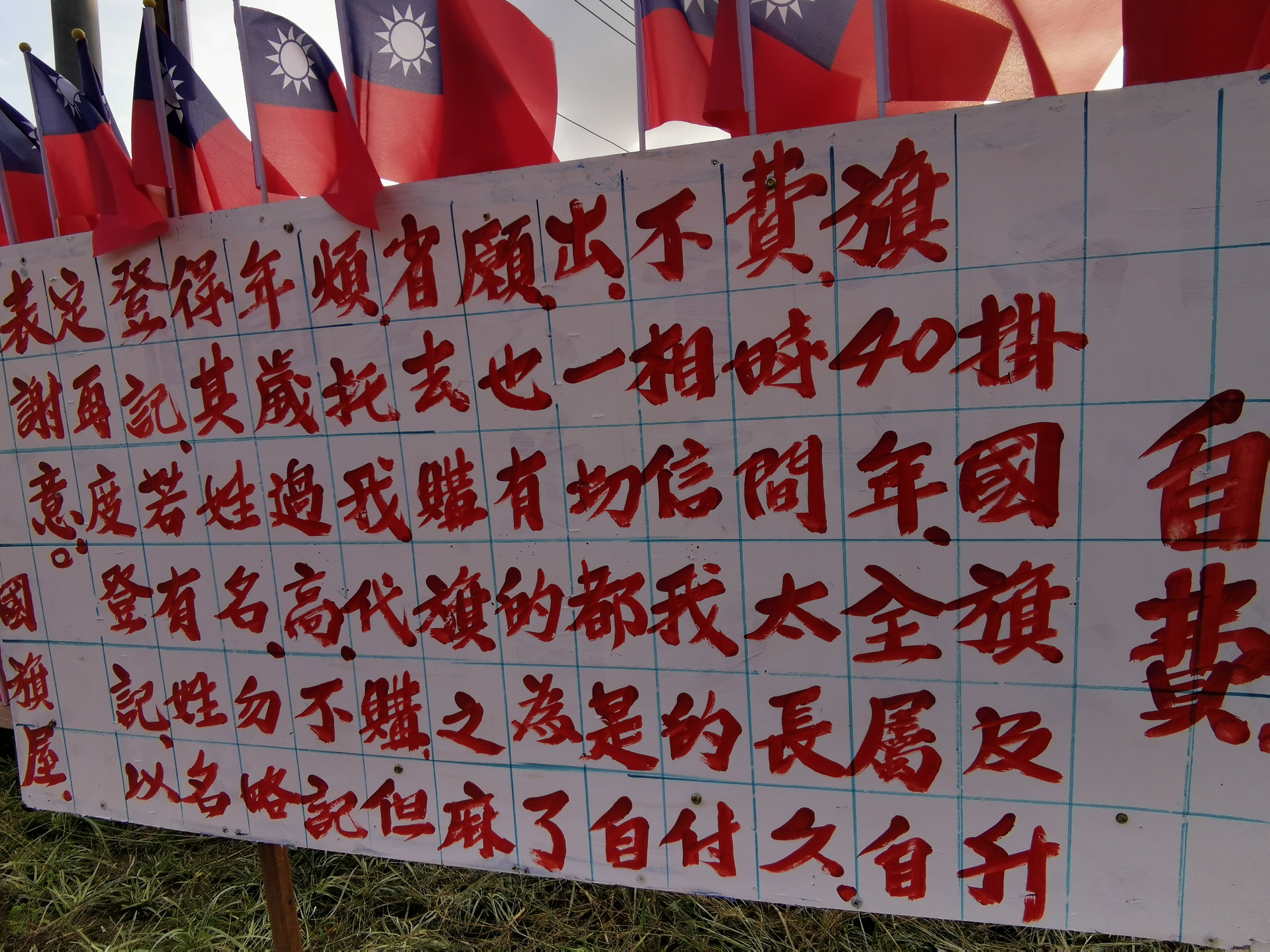高齡84歲的國旗屋米干老闆張老旺,自掏腰包 超過80萬元舉辦活動連續第30年將在國慶日當天舉辦升旗典禮,今年活動移師至龍岡圓環旁公園舉辦,現場已掛滿超過2萬面國旗,青天白日紅旗海飄揚吸引許多民眾打卡拍照,