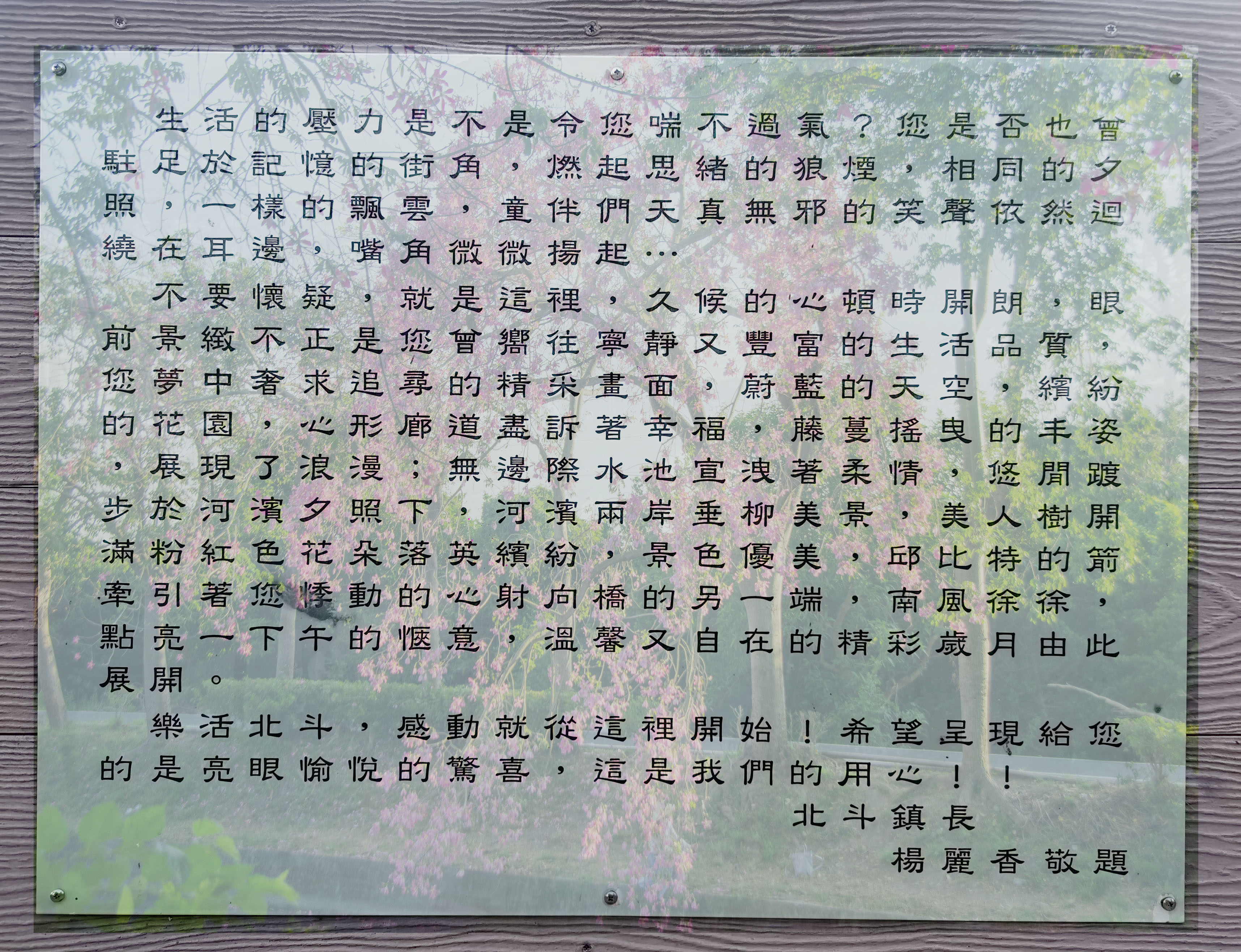 彰化北斗河濱公園美人樹號稱「北斗第一勝景」,20多年前在北斗渡船頭到台一線上,種植數百棵的美人樹,全長約1.5公里,秋日粉紅色花增添浪漫氛圍.