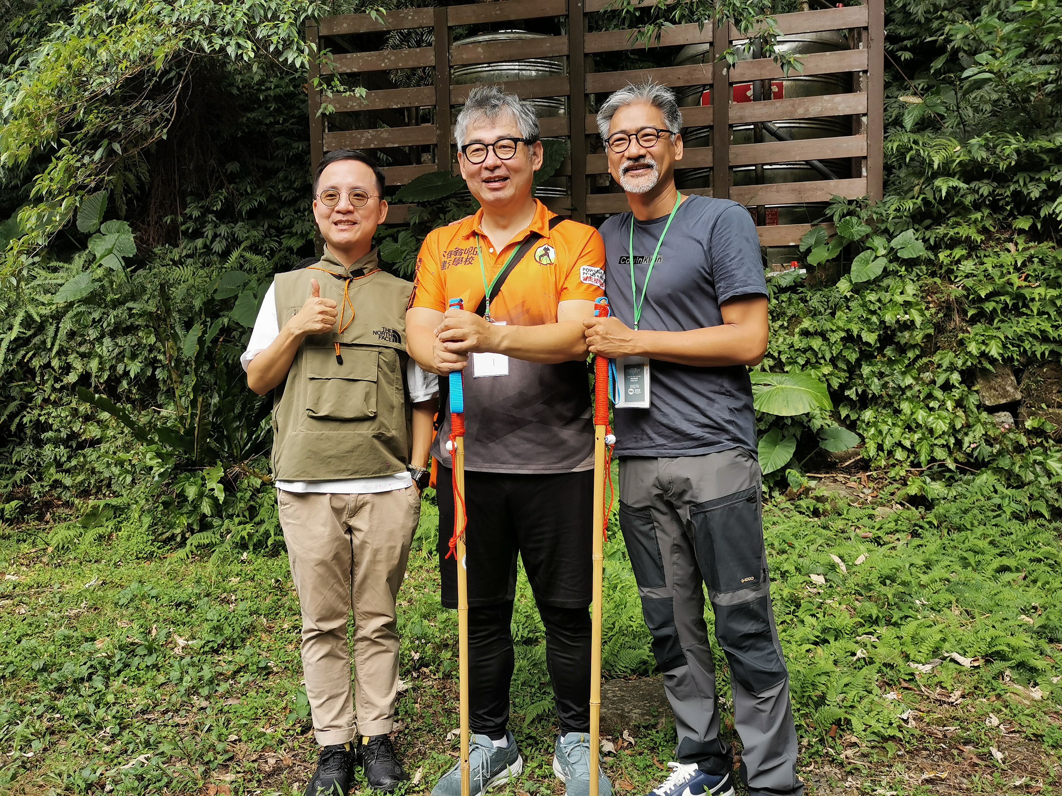 林業保育署於新北市烏來區的森林療癒基地「內洞國家森林遊樂區」,舉辦一日體驗活動,康寧醫院醫師郭建中教大家雙杖健走,既安全又能增加肌力。