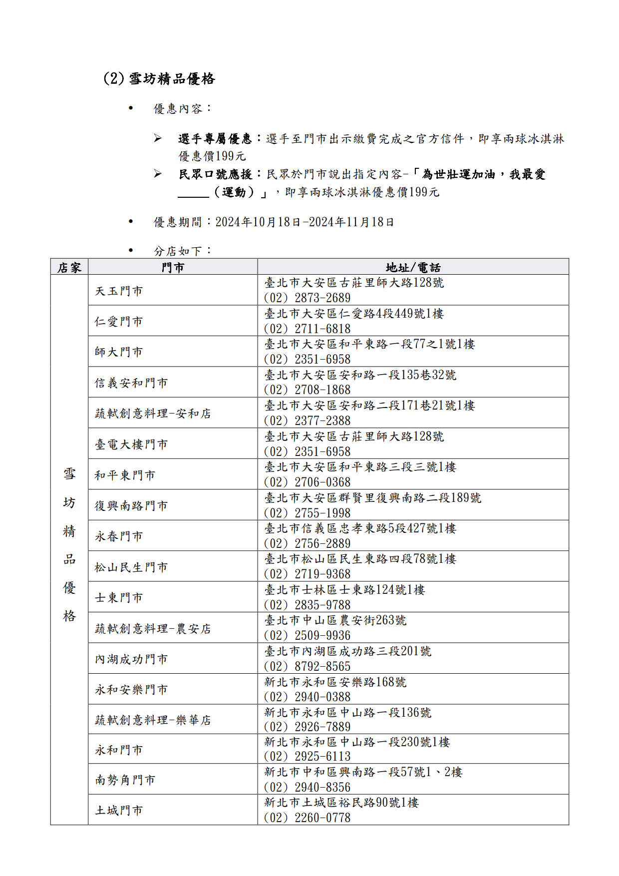 更多活動資訊及優惠,歡迎至2025世界壯年運動會官方網站(https://wmg2025.tw/zh-tw/home)或「臺北市商業處-我是商Ya人」FB粉絲團(https://www.facebook.com/tcooc/)查詢。