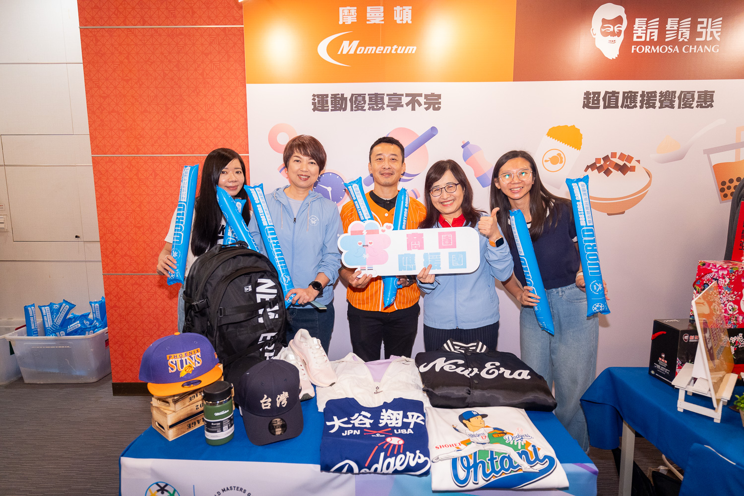 臺北市林奕華副市長、新北市龔雅雯副秘書長、大台北商圈產業協進會李寶星理事長與二本松、Ponpie澎派及一之鄉等美食首發應援特約店家一起為世壯運加油