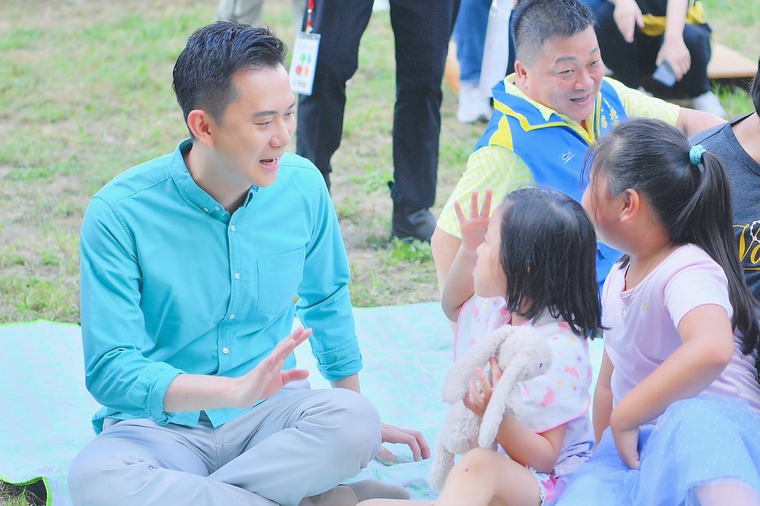 圖說:竹北市長鄭朝方與野餐布置評比老師蔣育鳳 圖/竹北市公所提供