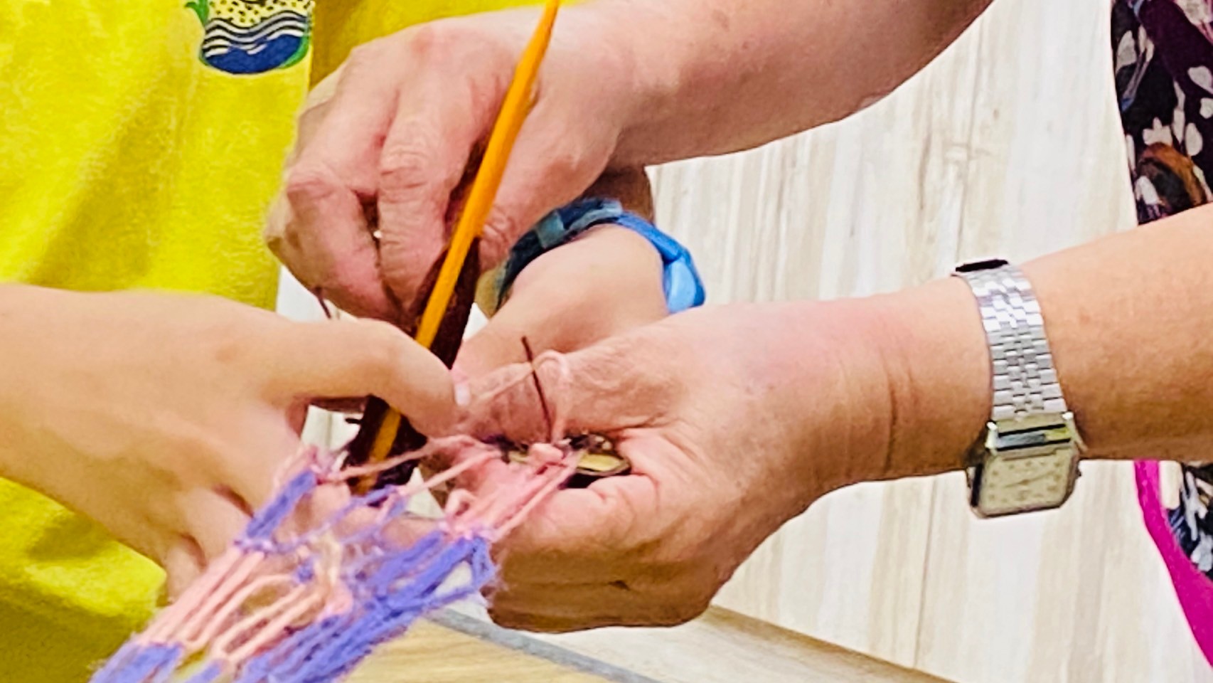 奶奶教小朋友體驗當年織漁網 圖/海科館提供