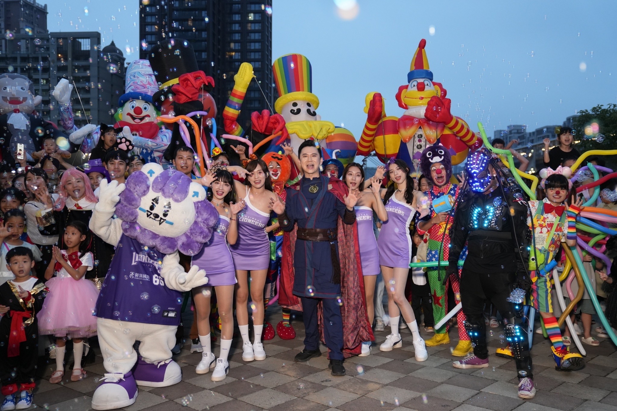 26日下午兩點開始,高鐵站前廣場舉辦「電影交響派對x萬聖大遊行」,遊行開始由慕獅女孩的熱舞揭開序幕,竹北市長鄭朝方化身奇異博士,他表示,要像奇異博士一樣,將不可能化為可能,把竹北的市政做得更好! 民眾打扮成殭屍、羽毛球、鐵血戰士等,為整個浩大的遊行增添趣味性。遊行結束後,壓軸的狂美交響管樂團帶來24首經典動畫卡通曲目,讓在場民眾沉醉在共同的記憶中。