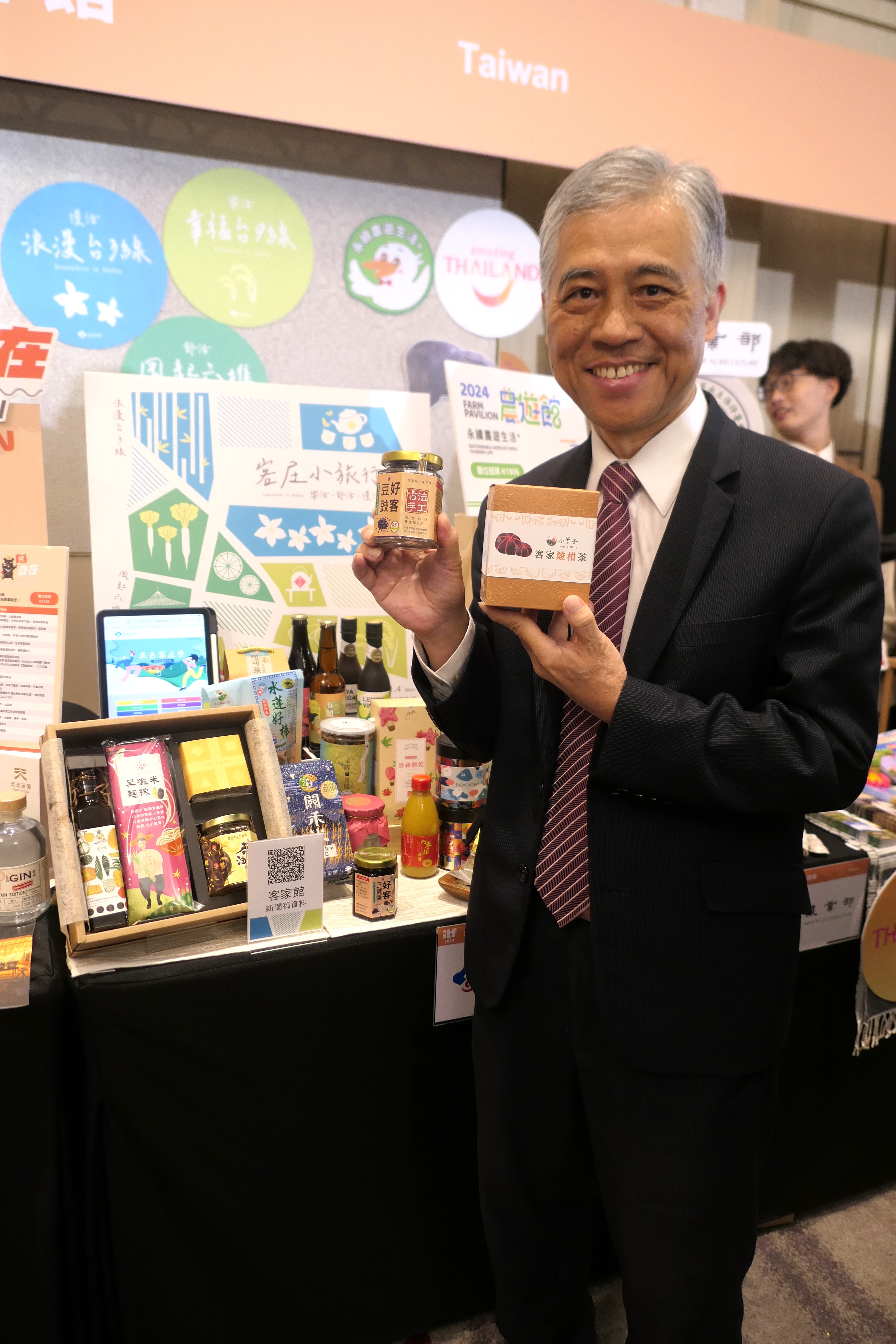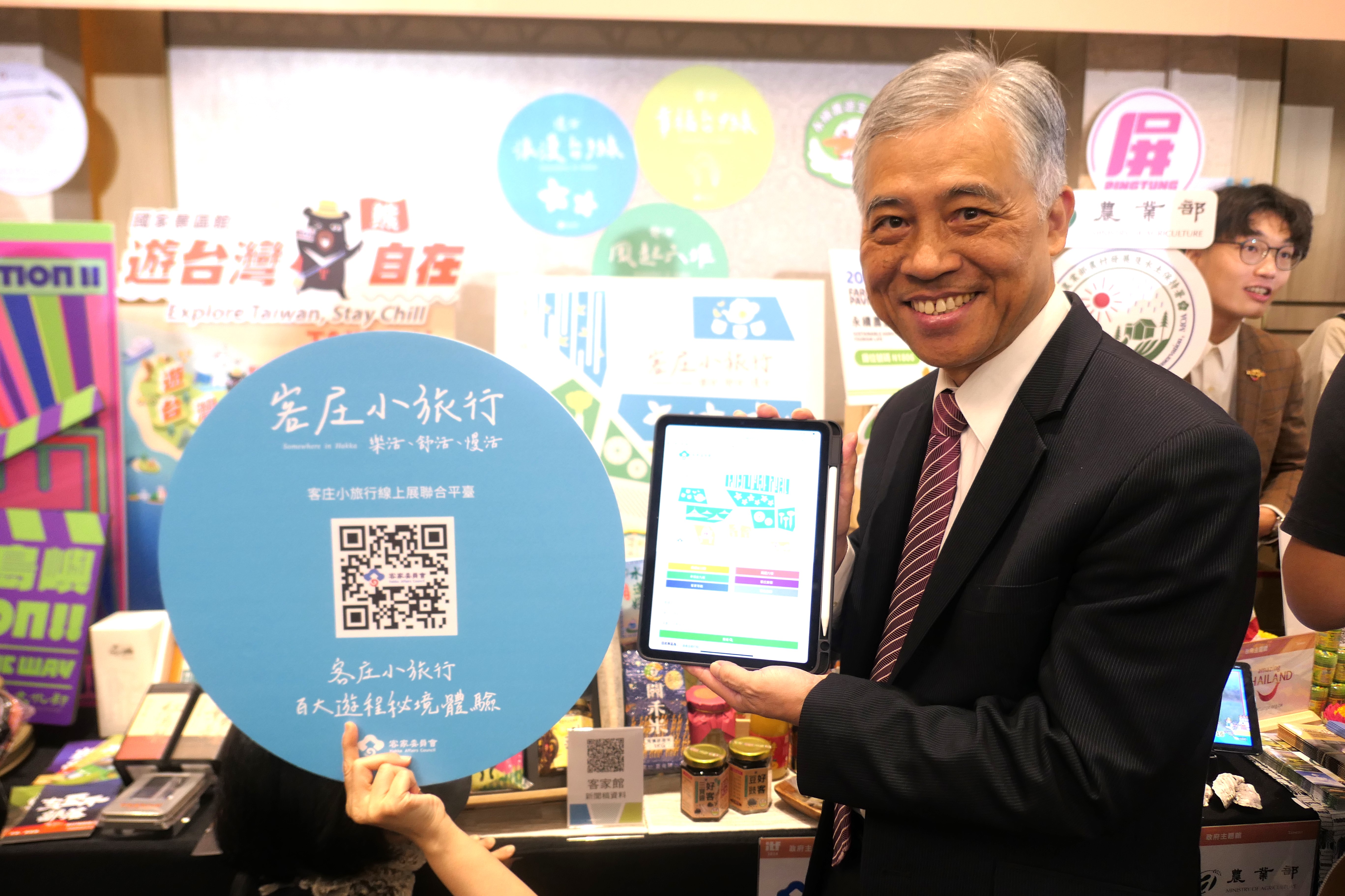 范副主委表示,這次客委會在台北國際旅展客家館推出的主題為」「客庄小旅行-樂活、舒活、慢活,特別邀請來自台三線、六堆及台九線的旅行業、客庄社區、等路、旅宿等共27家業者實體展出。此外,客委會打造線上客家旅展聯
