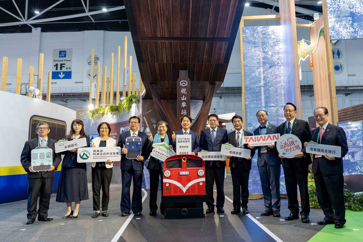國家森林館將祝山車站搬進展館,邀請賴總統以幸福臺灣車票宣告2025臺灣鐵道旅遊年正式啟動。 圖/台灣觀光協會 提供