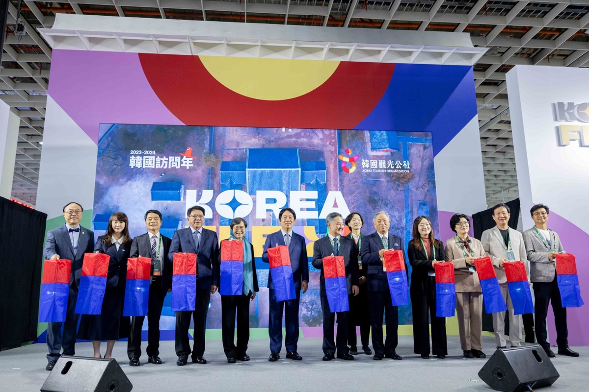 通部伍勝園次長、總統府潘孟安秘書長、賴清德總統、台灣觀光協會簡余晏會長、ITF台北國際旅展籌備委員會葉菊蘭主委、日本台灣交流協會片山和之代表、駐台北韓國代表部 李殷鎬代表、馬紹爾群島共和國大使館卡蒂爾大使、貝里