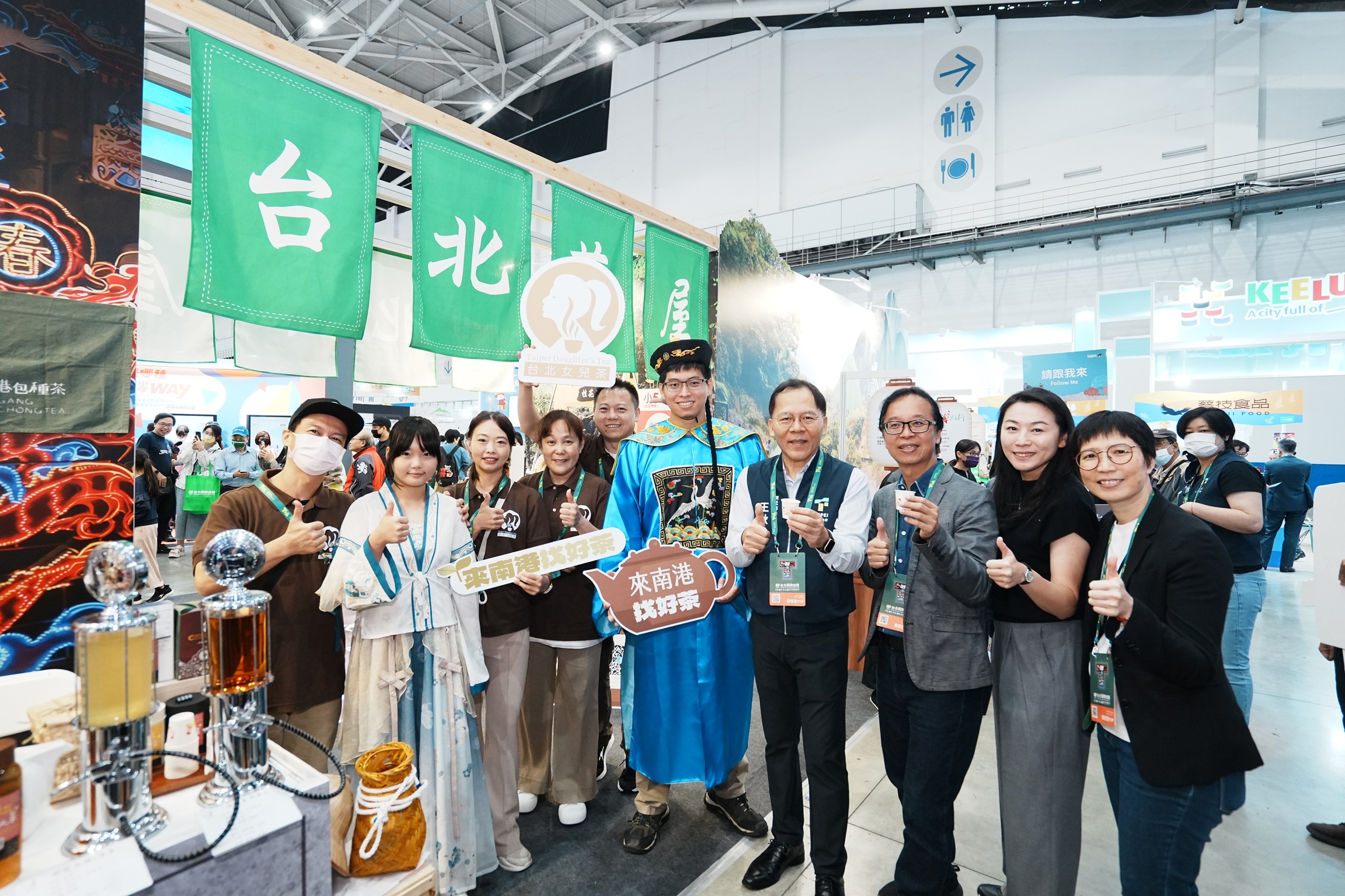 臺北館11月2日上午舉辦開幕活動,在捷運盃街舞大賽冠軍團隊「SAUCY MOCHI」活力四射舞蹈表演中揭開序幕,臺北館以獨特的「台北」字型燈牆設計融入「2025雙北世界壯年運動會」、「台北建城140周年」等代表性意象,展館更呈現臺北市各區特色,並設置環騎臺北自行車隧道、臺北茶屋體驗區。為延續去年臺北館榮獲大會頒發「最佳永續獎」的城市永續理念,今年臺北館以「低碳行旅.點亮臺北」為主題,融入「環騎臺北」、「我的減碳存摺」及「YouBike」等低碳旅遊宣導與設計元素,並運用可回收及環保材質進行搭建,於每一場旅展重複利用,致力落實綠色會展精神。
