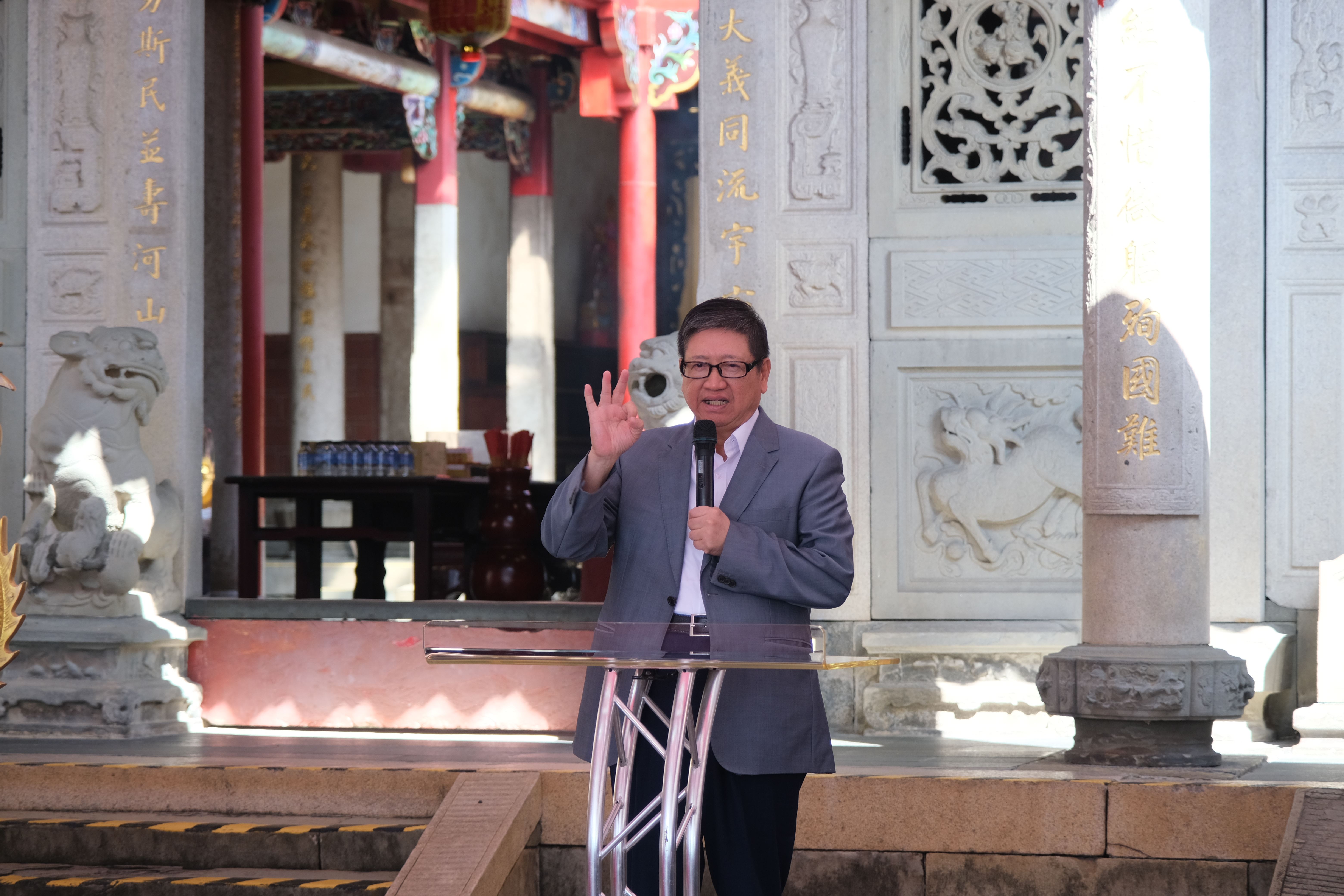 縣長楊文科表示,他非常高興卓院長來參加秋季祭典,義民廟每年有三次重要祭典,他參加兩次,希望明年春祭他也來參加,這也表示行政院長非常重視、也全力支持義民廟客家精神傳承。客家人有三個重要的精神,第一是義民爺的忠孝傳家,第二是客家人的晴耕雨讀,第三則是「硬腳掌筋」,也就是腳踏實地。