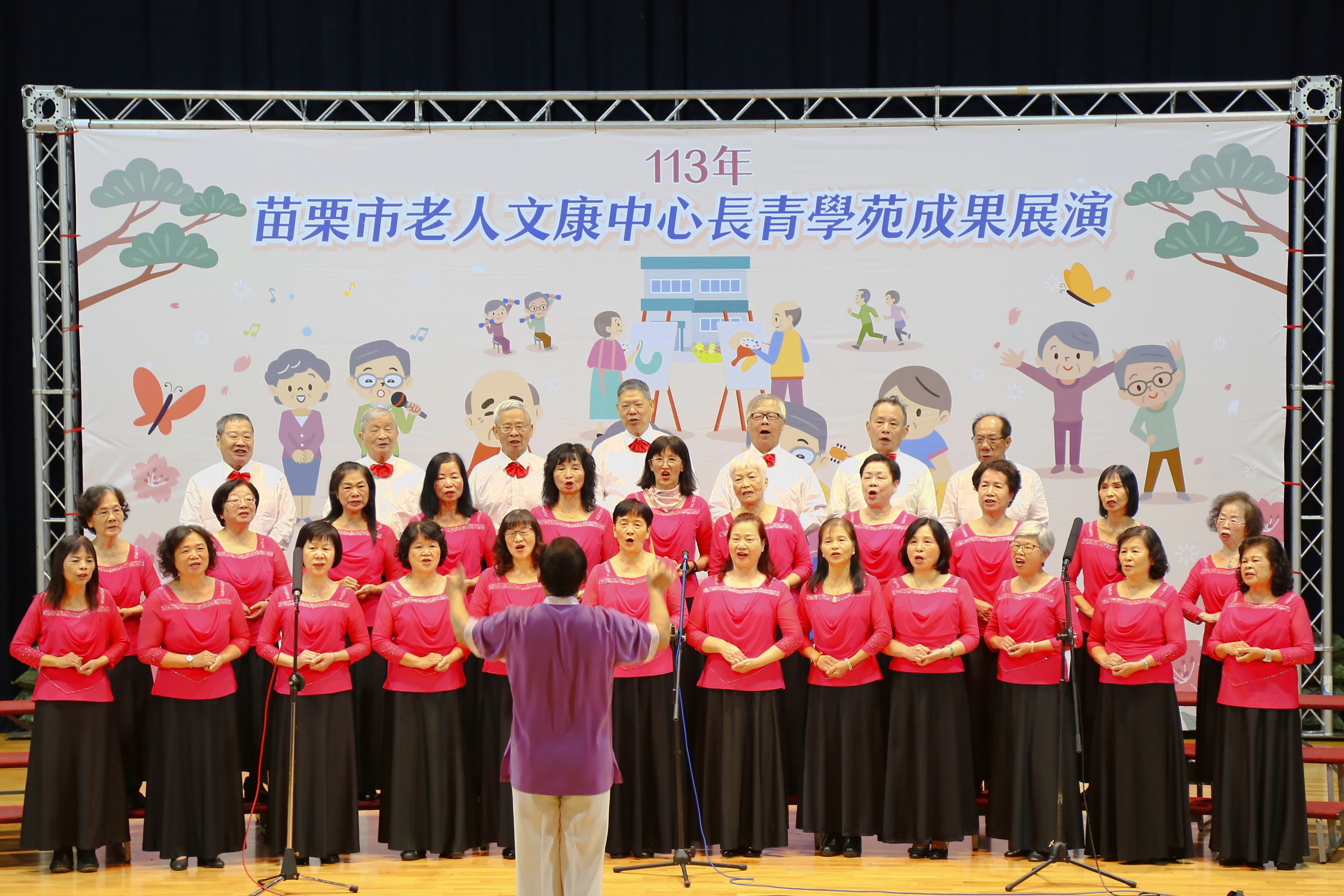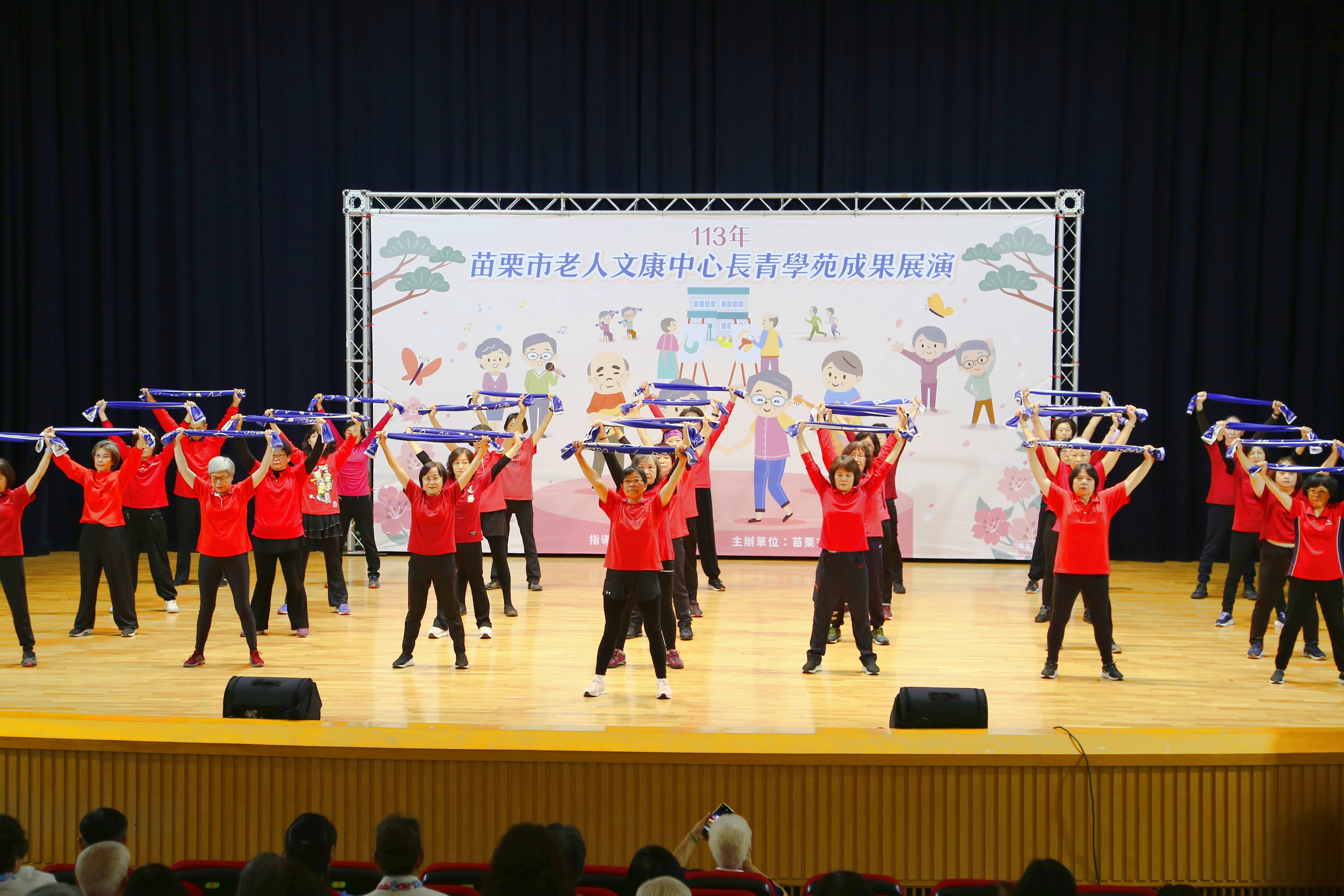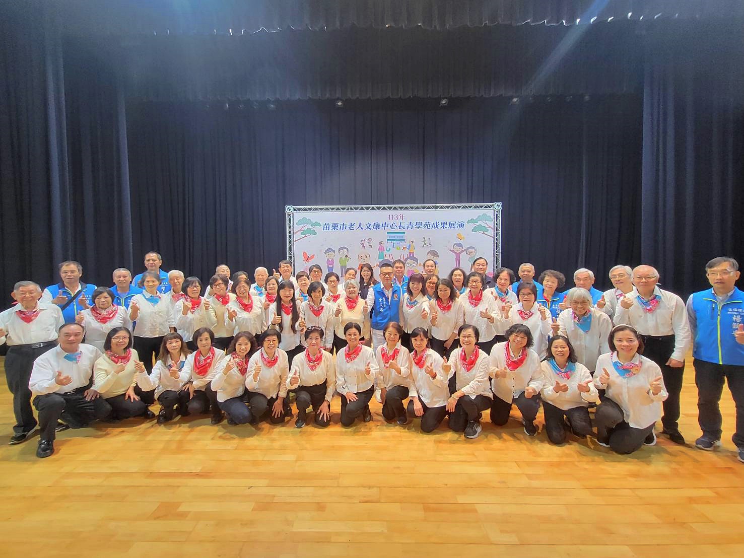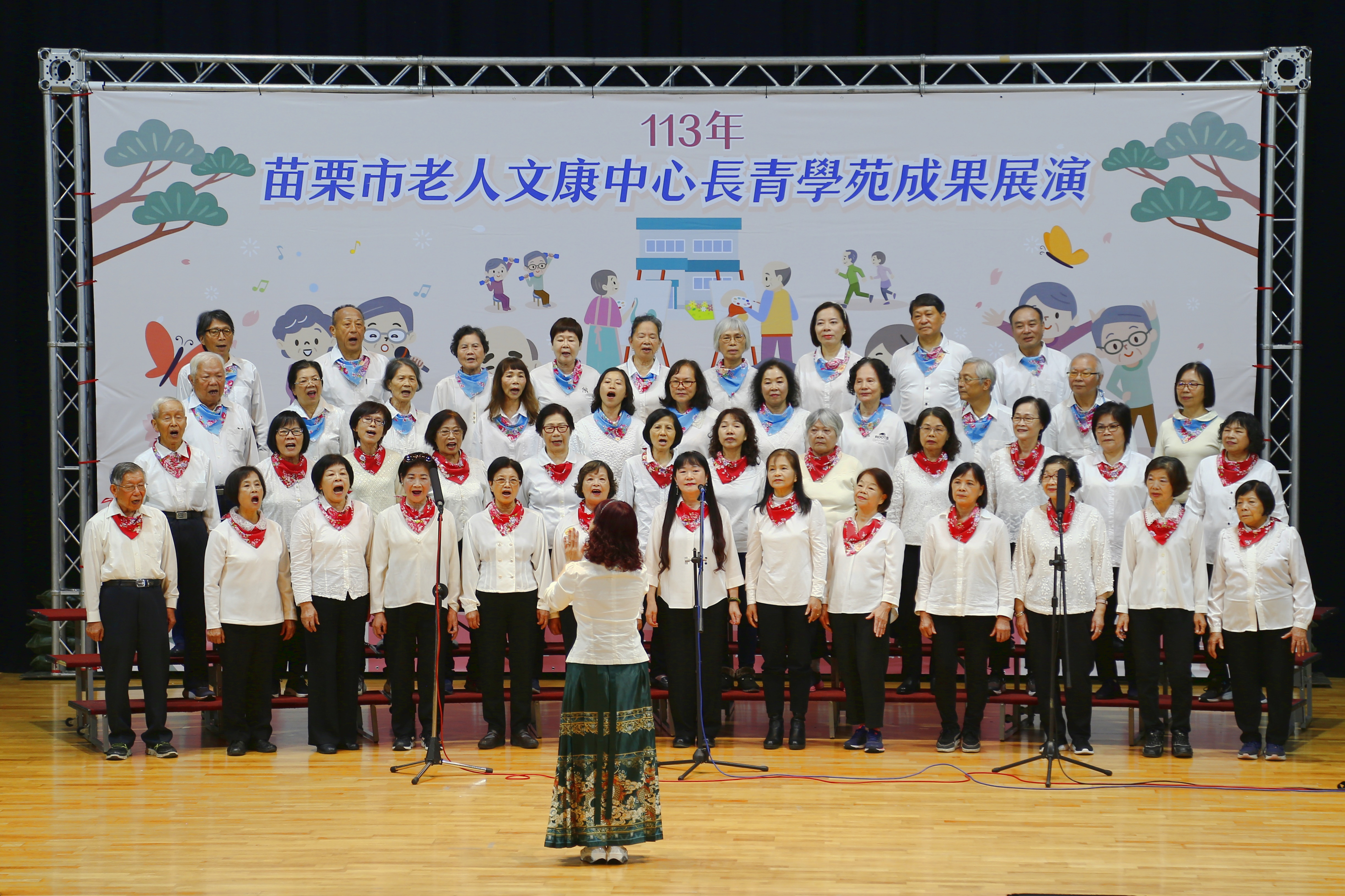 苗栗市老人文康中心長青學苑於12月5日在苗栗文觀局中正堂舉行一年一度的成果發表會。當天,學員們興高采烈、盛裝出席,彷彿參加一場隆重的盛宴。他們精心準備的表演中,每一首歌、每一支舞都蘊藏著無數努力與心血。在盡情的唱跳之間,彷若青春重返,現場每一位觀眾都深受感動,氣氛溫馨而熱烈。