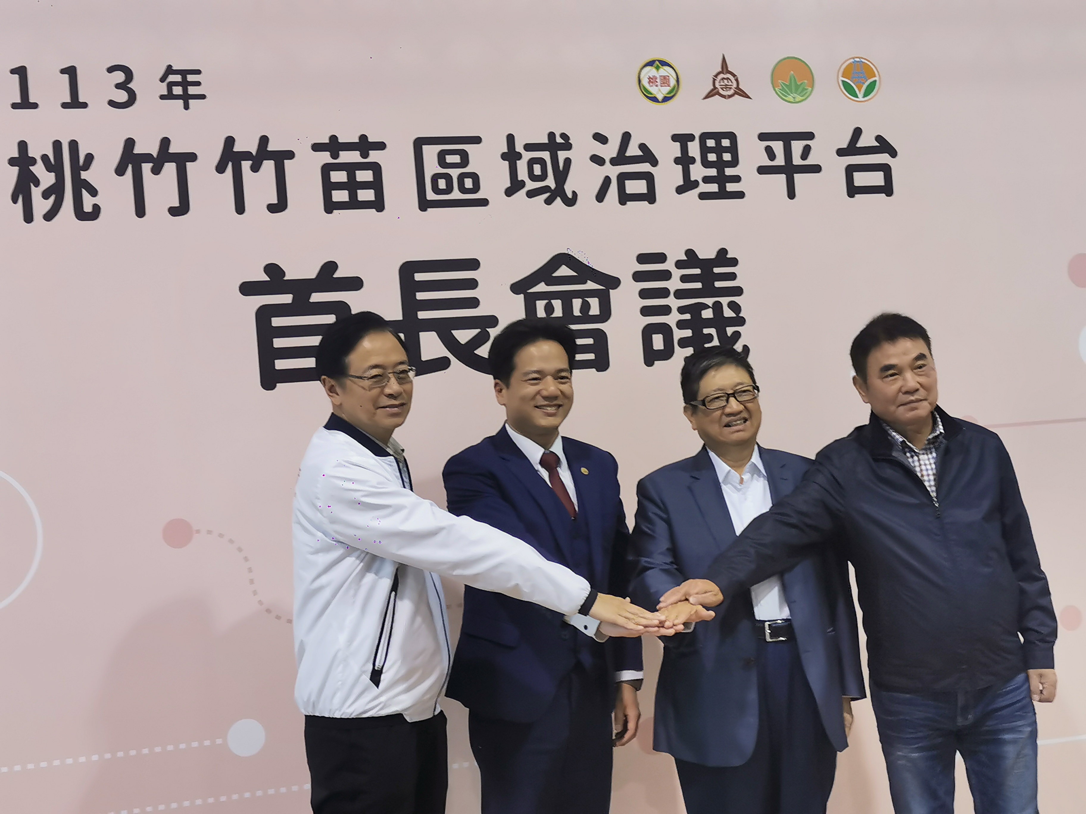 桃竹竹苗首長會議,分別為桃園市長張善政、新竹市代理市長邱臣遠、新竹縣長楊文科、苗栗縣長鍾東錦(由左至右)。