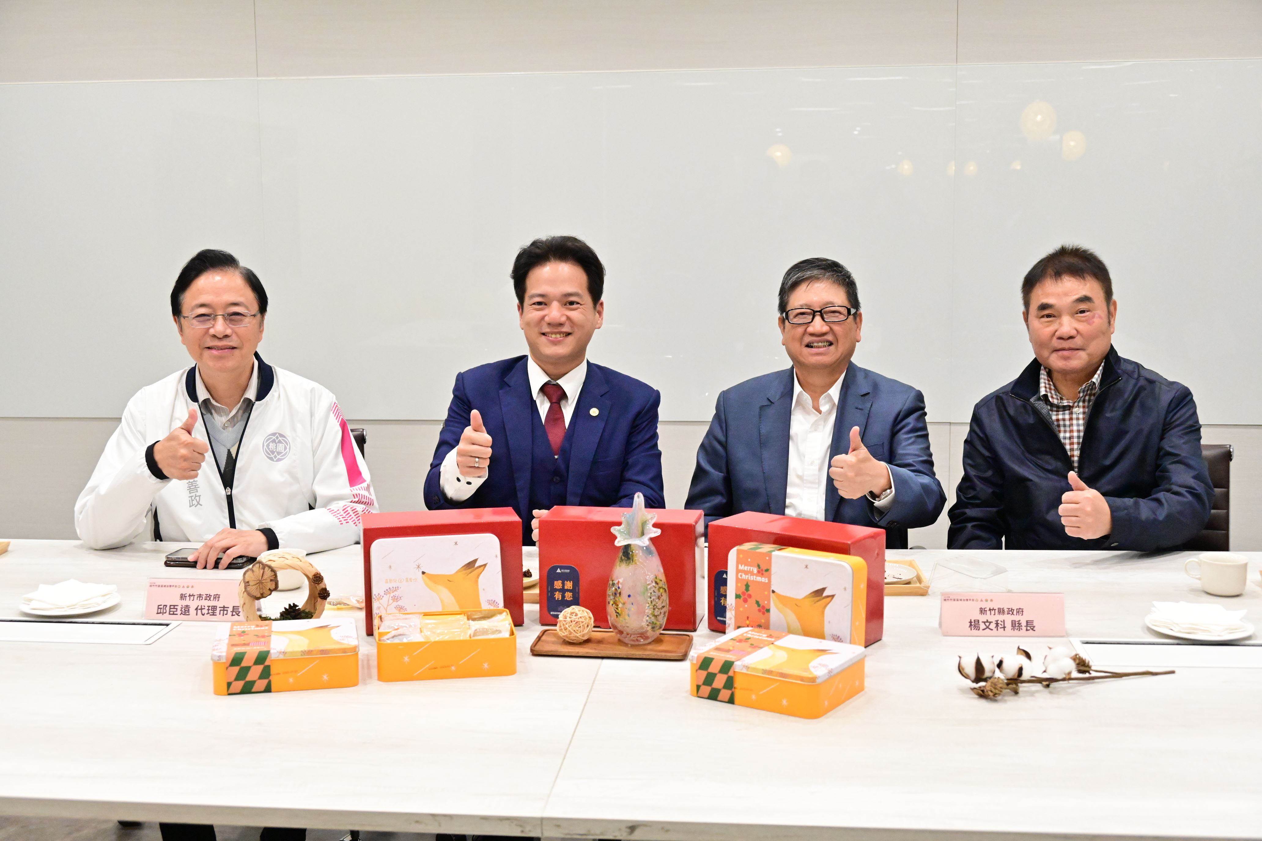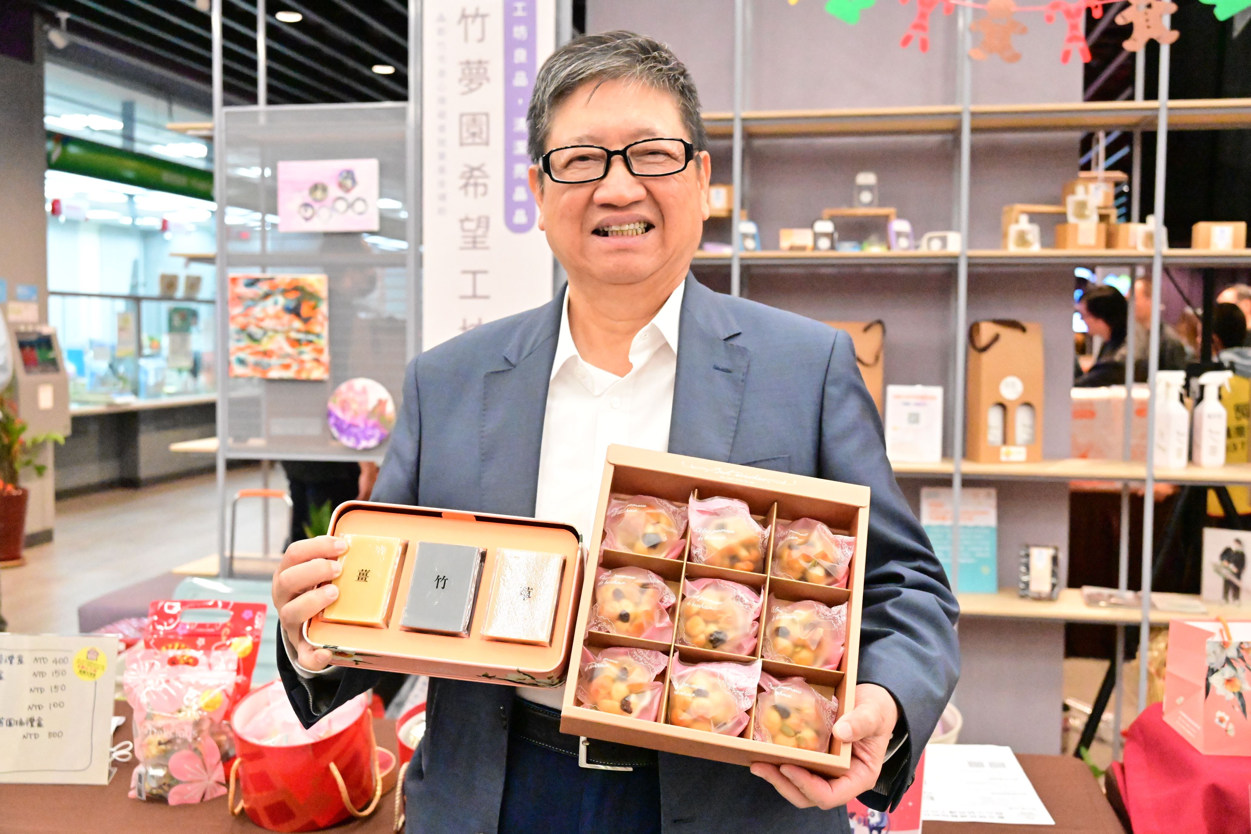 此外,桃竹竹苗4縣市長也共同為「桃竹竹苗庇護工場聯合行銷記者會」代言,新竹縣共有愛家庇護工場、甜心小站庇護工作坊參與,展示精油手工皂、甜點等產品。楊文科也表示,這項跨區活動也是共同推動社會責任的重要一步,他也呼籲重點企業福委會及科學園區廠商等一同支持,當企業選擇優先採購庇護工場的產品時,不僅是對企業社會責任的實踐,更是在幫助更多身心障礙者開啟職業生涯,實現他們的夢想,響應「心中有愛,就有未來」。