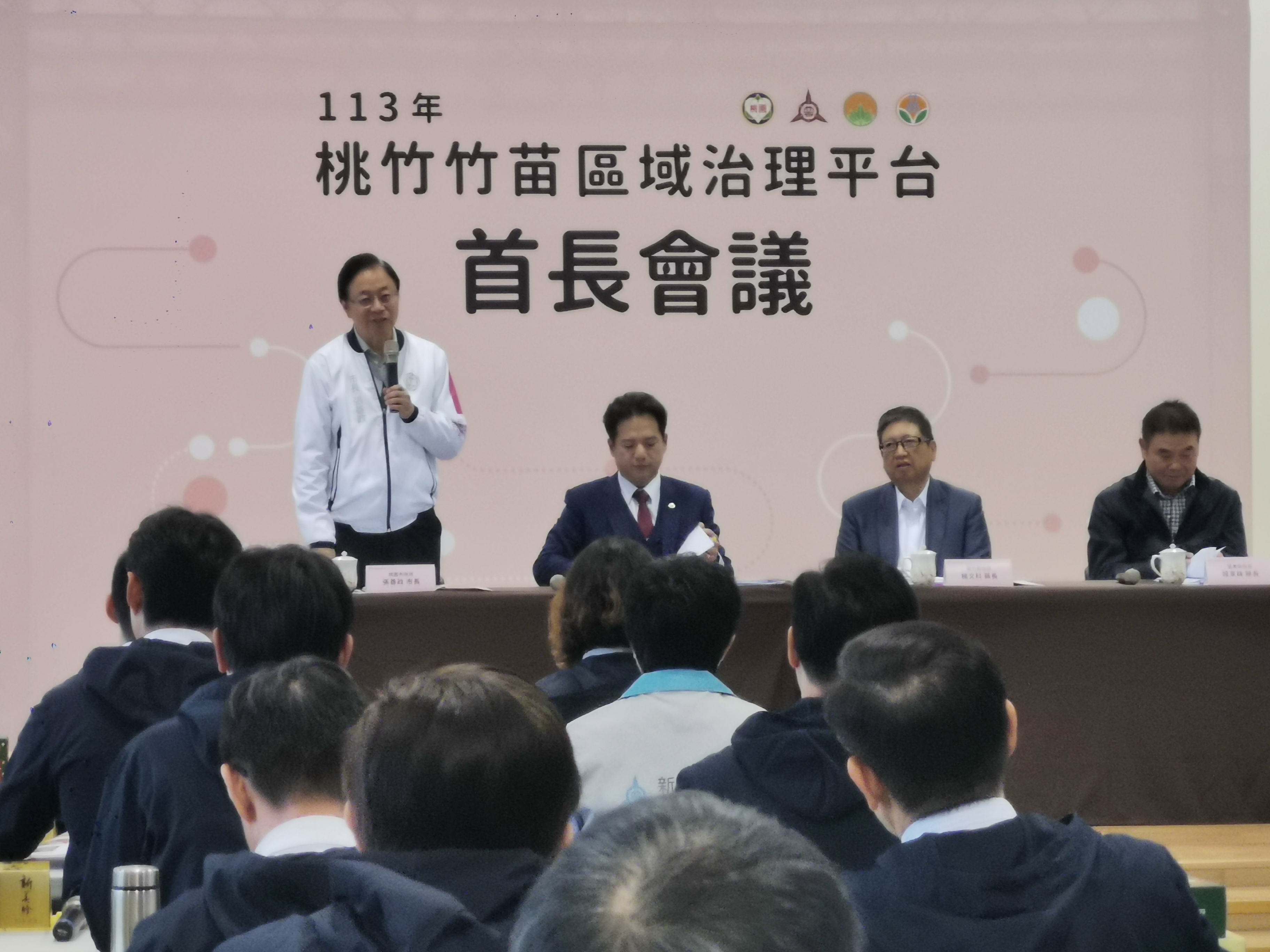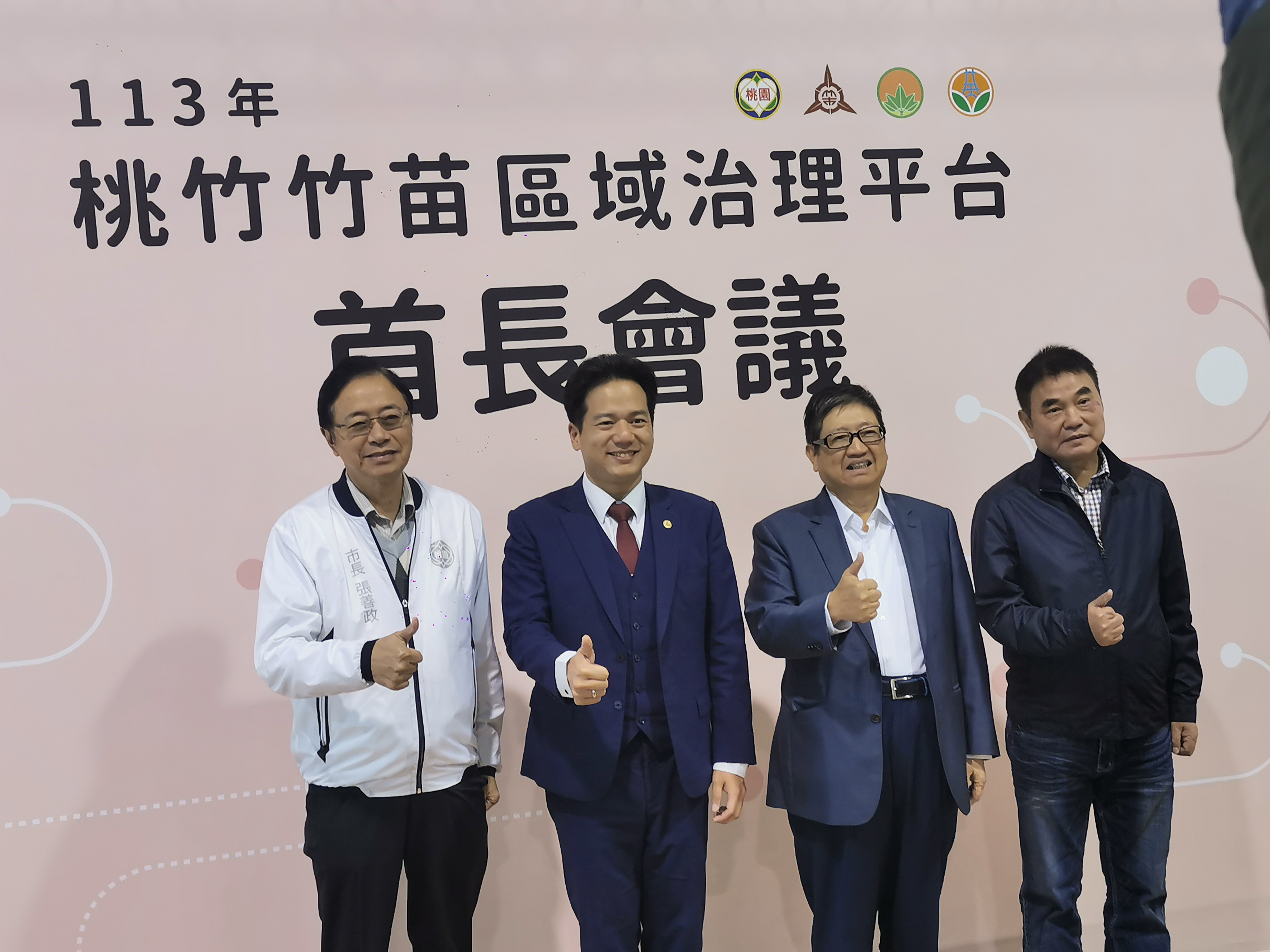 新竹縣長楊文科表示,桃竹竹苗區域治理平台成立以來,四縣市密切合作,共同推動教育、交通、環保等議題,四縣市首長不分黨派,展現合作典範,期盼透過四縣市集體努力,為鄉親打造更好的生活環境。