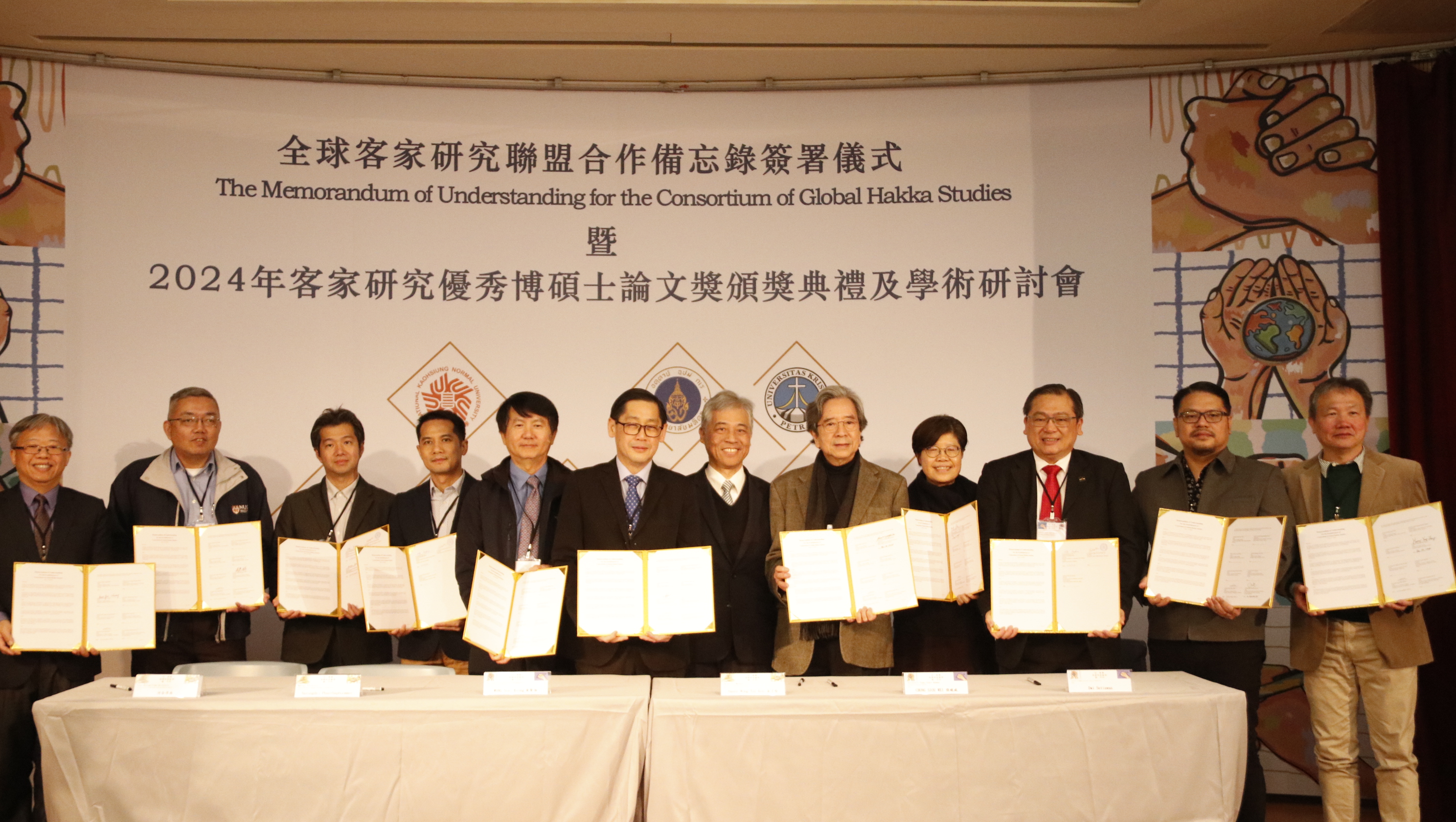 客家委員會副主任委員范佐銘12月14日代表主任委員古秀妃前往國立中央大學,出席「全球客家研究聯盟合作備忘錄續約簽署儀式暨2024年客家研究優秀博碩士論文頒獎典禮」,期透過續約簽署促進臺灣與國際之間的學術交流,提升客家與族群研究的質量,強化客家文化發展與認同。