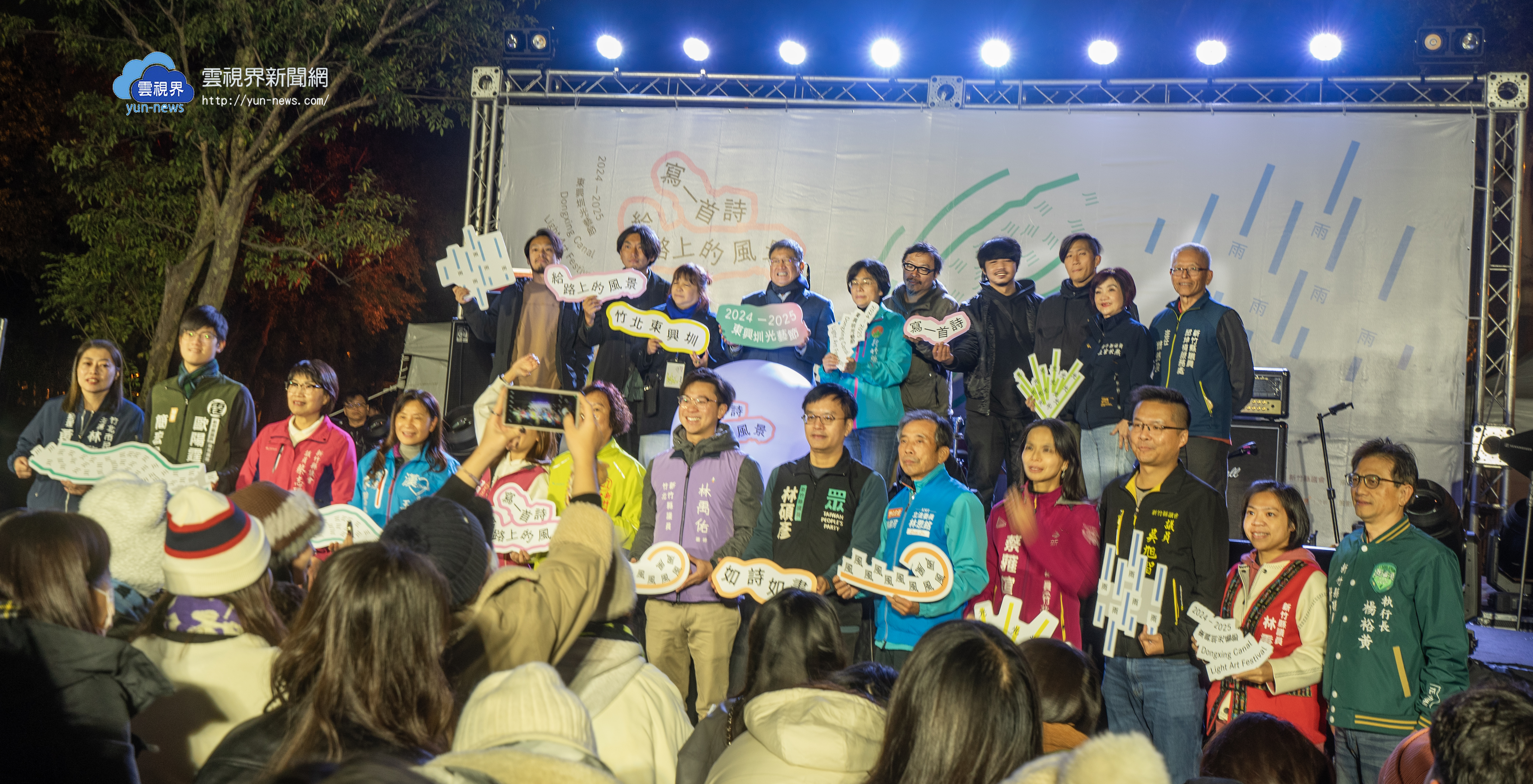 新竹縣【2024-2025東興圳光藝節】20日新竹縣長楊文科點燈啟動與藝術家及貴賓合影