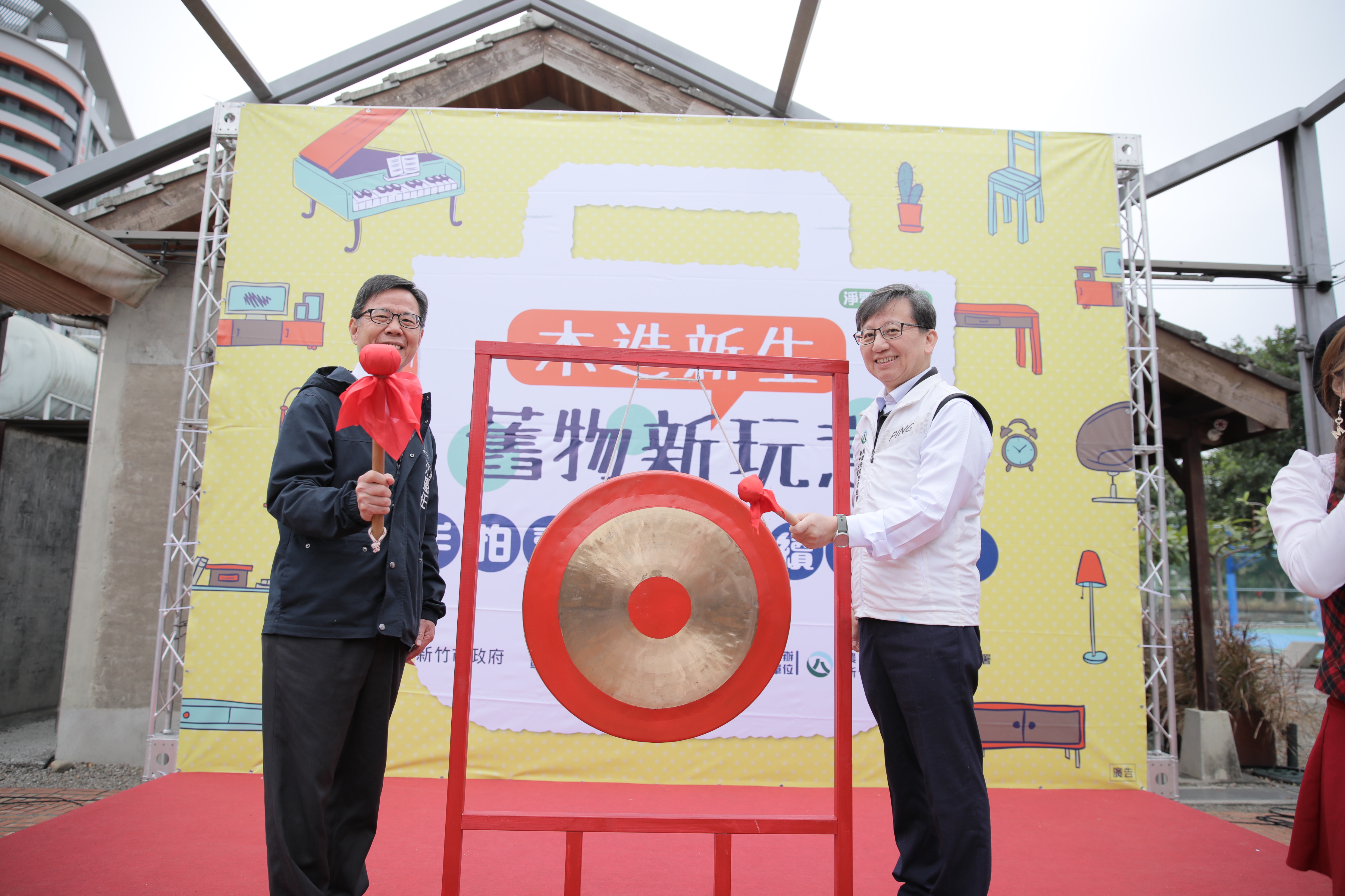 環保局表示,現場展出27件再生家具,更邀請鋼琴買家現場使用修復再生的鋼琴奏出悠揚樂章,並由副分署長劉忠憲與環保局長江盛任共同敲響大鑼,為這場結合「惜物、設計、環保與文化」的拍賣活動揭開序幕。