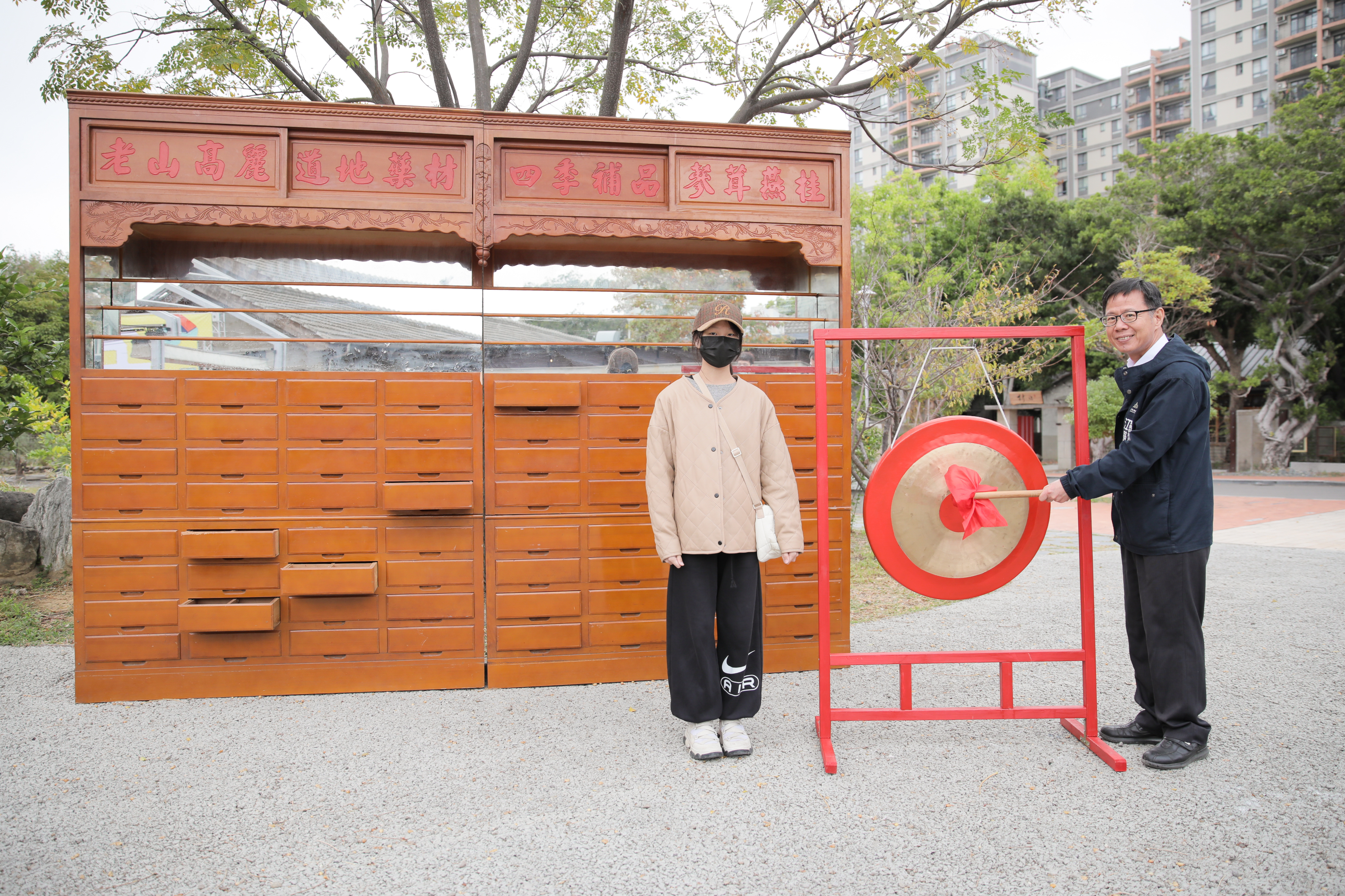 照片說明5.中藥櫃拍賣得主蕭小姐合影。 圖新竹市政府提供