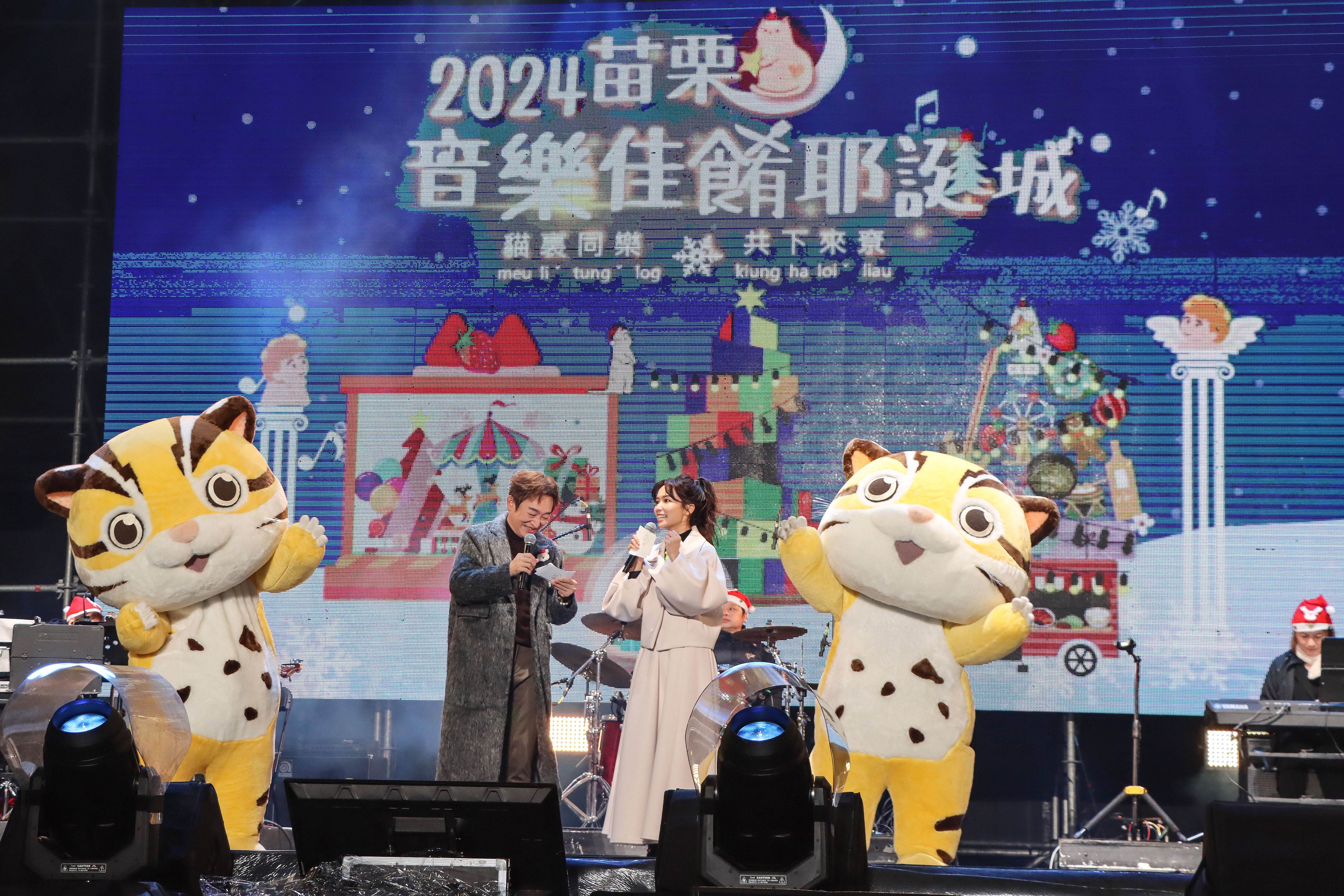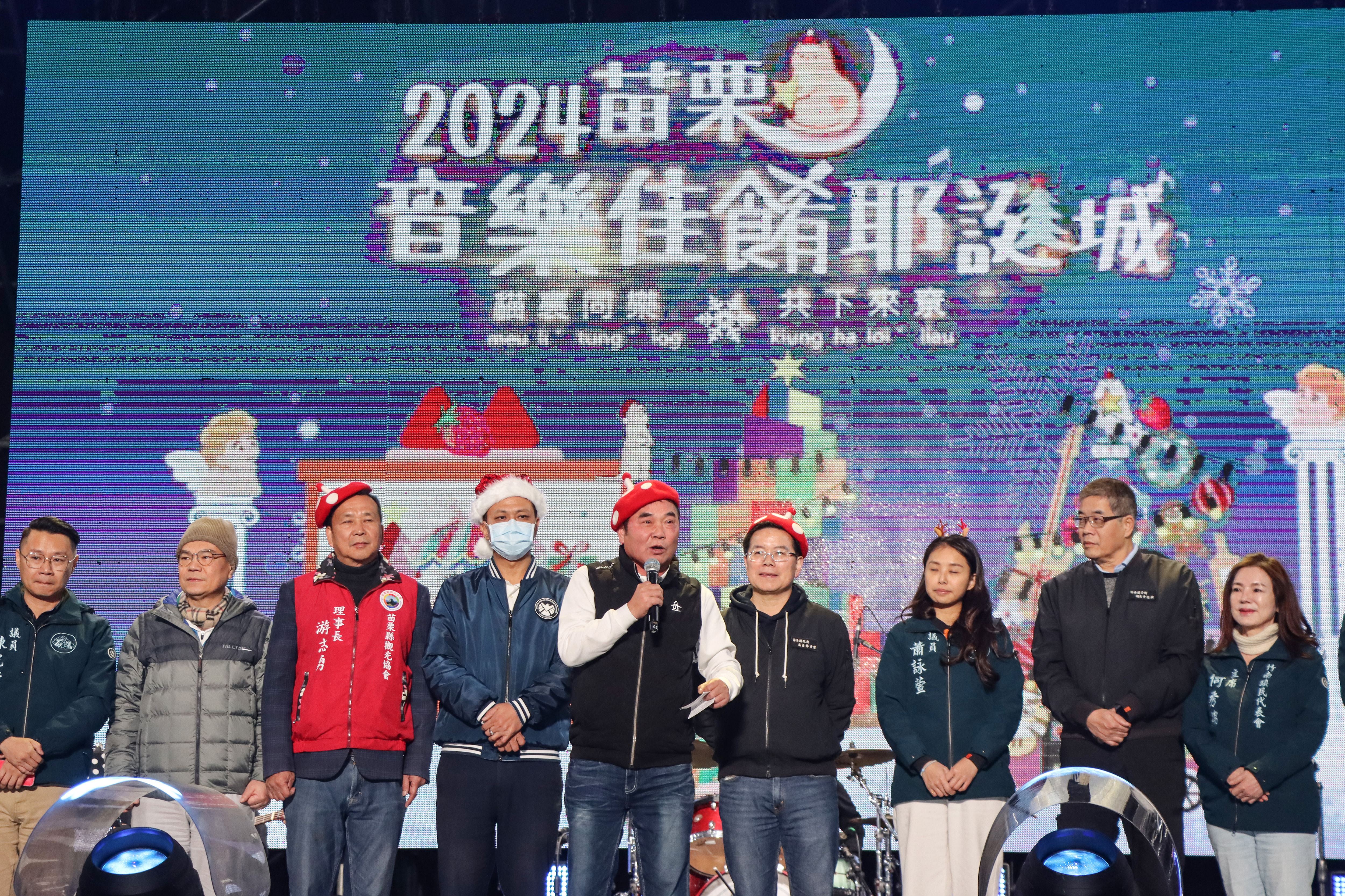 「2024苗栗音樂佳餚耶誕城」音樂會於12月21日至24日在竹南運動公園登場,邀請超過31組知名藝人演出,安排4場包括國語、台語、原音及客語4種語言且各有風格的演唱會,邀請演出的則來自各族群的知名歌手,星光閃耀,以多元文化讓民眾沉浸在音樂饗宴中。縣長鍾東錦21日為活動開幕,邀請全台民眾暢玩苗栗、聽演唱會,在苗栗度過開心佳節。