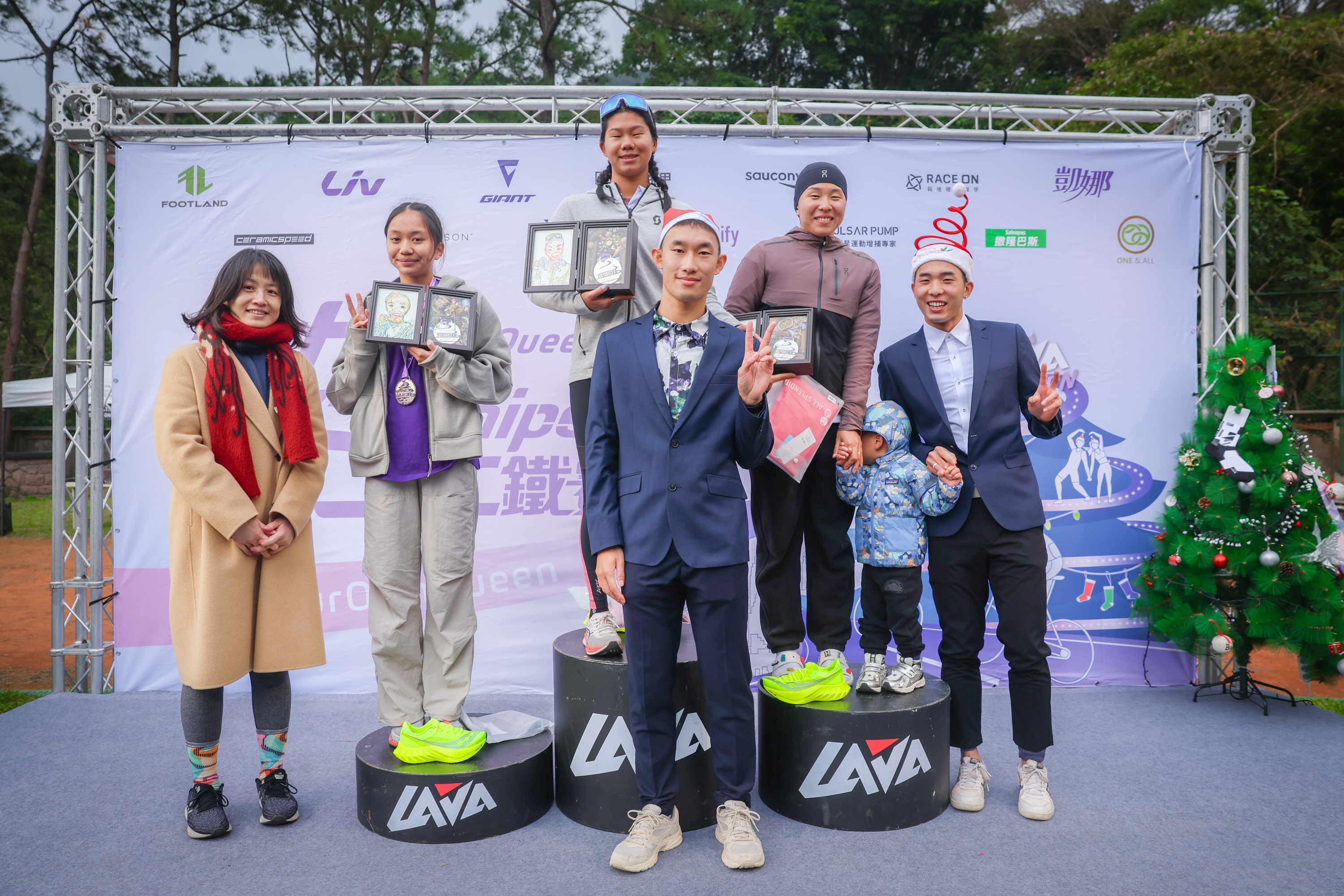 比賽日(12/22)鄰近聖誕節,現場更邀請到鐵人界 3 位小鮮肉擔任「聖誕老公頒獎嘉賓」,為女王選手們掛上完賽獎牌。分別為「112年全運會冠軍、今年IM 70.3 墾丁連霸得主」張家豪、「2022鐵人三項國手選拔 U19冠軍,目前就讀台北市立大學 2 年級」藍文謙、「2024-23 U23亞洲錦標賽國手」何孟橋,其中藍文謙也戴上號碼布和女王選手們一同完成兩鐵,最後回到終點為大家掛上榮耀獎牌。