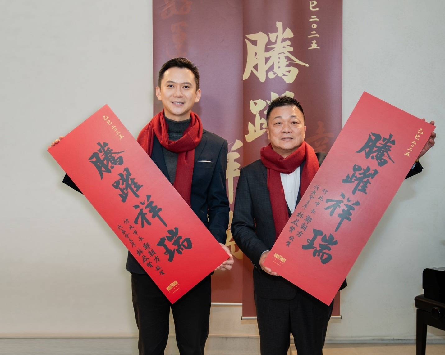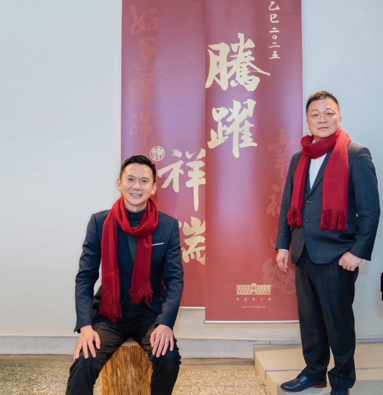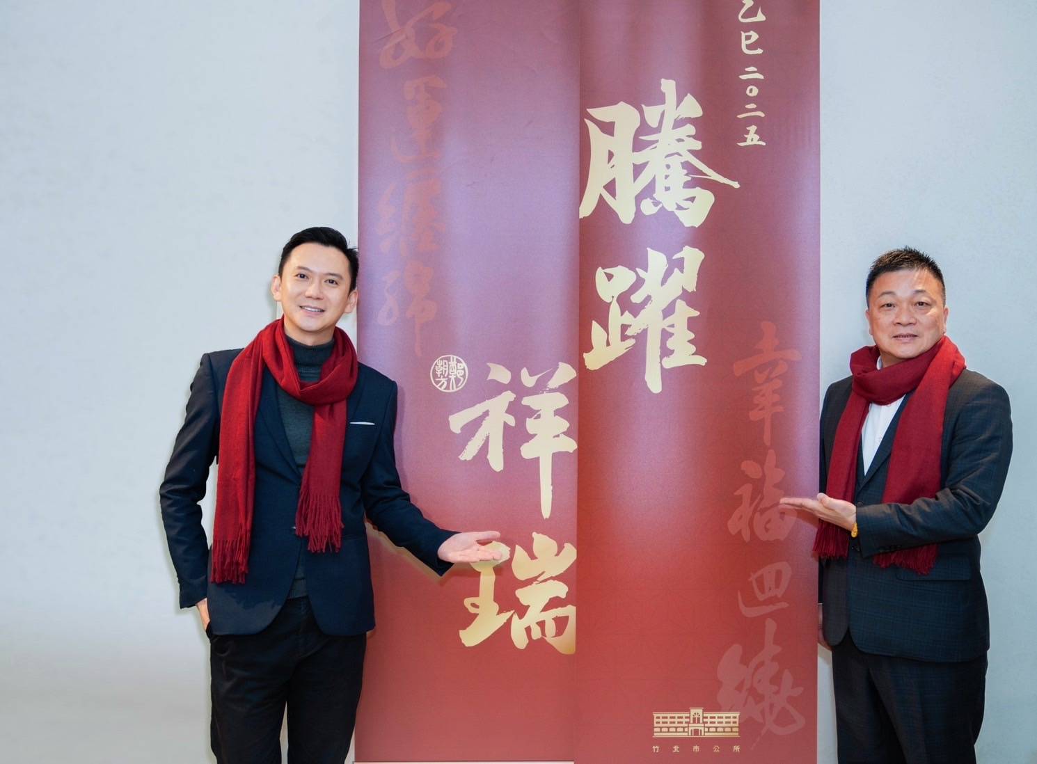 竹北市長鄭朝方與代表會主席林啟賢連袂發表新年春聯,迎接乙巳蛇年的到來。市長鄭朝方今年持續邀請書法功底深厚的藝術家葉國居老師揮毫創作,以「騰躍祥瑞」為主題,祝福市民新的一年吉祥如意、生機盎然。