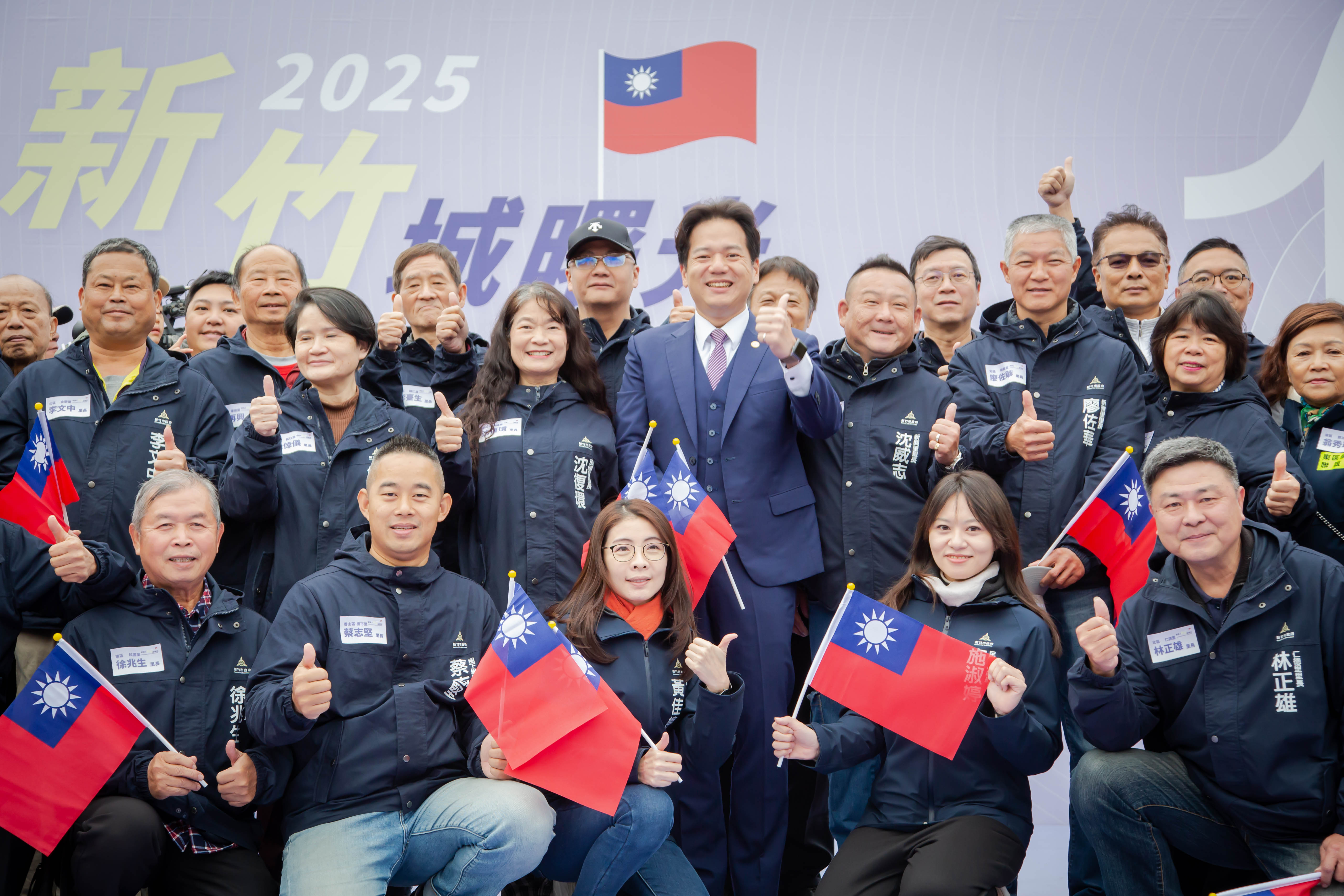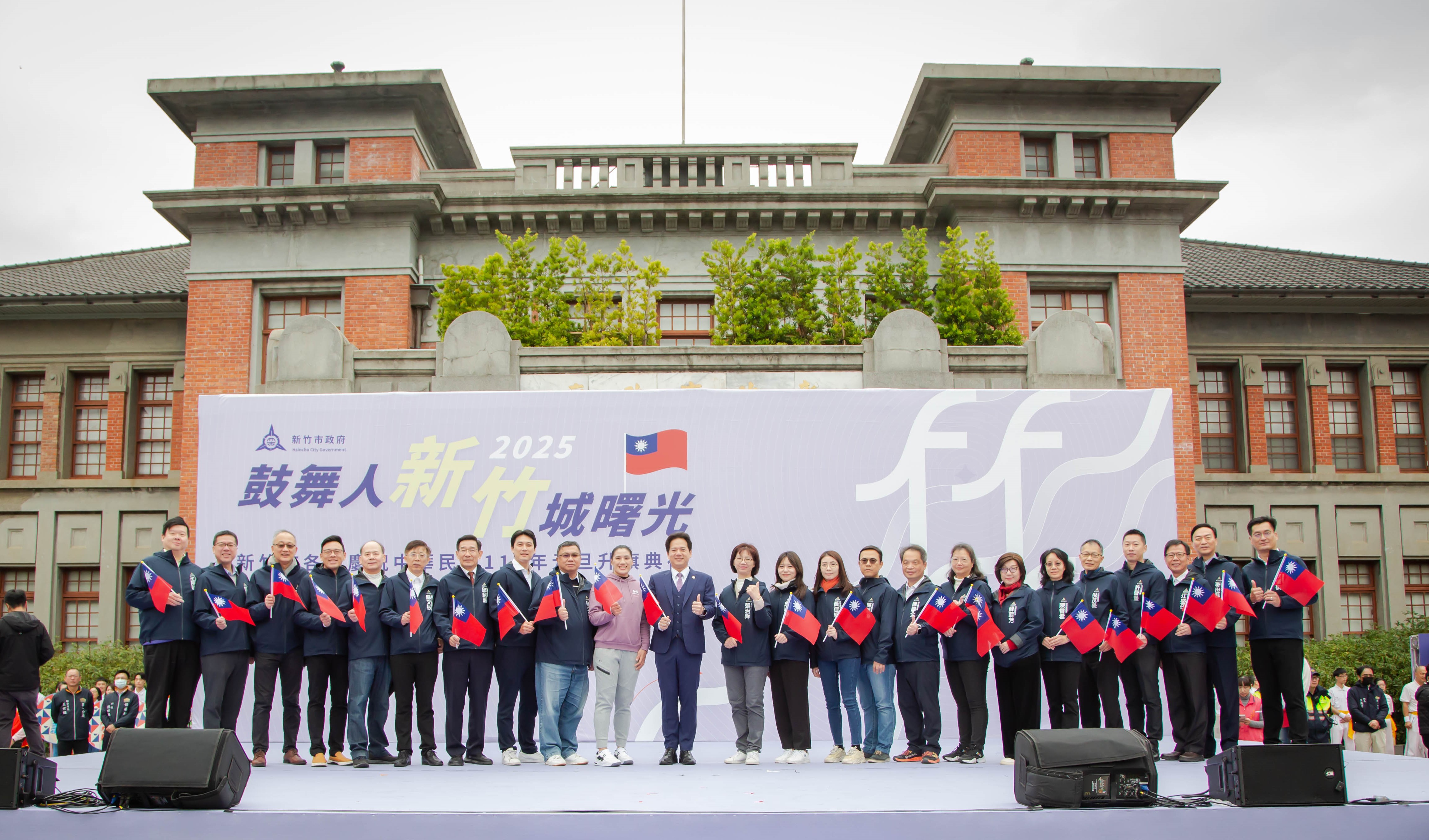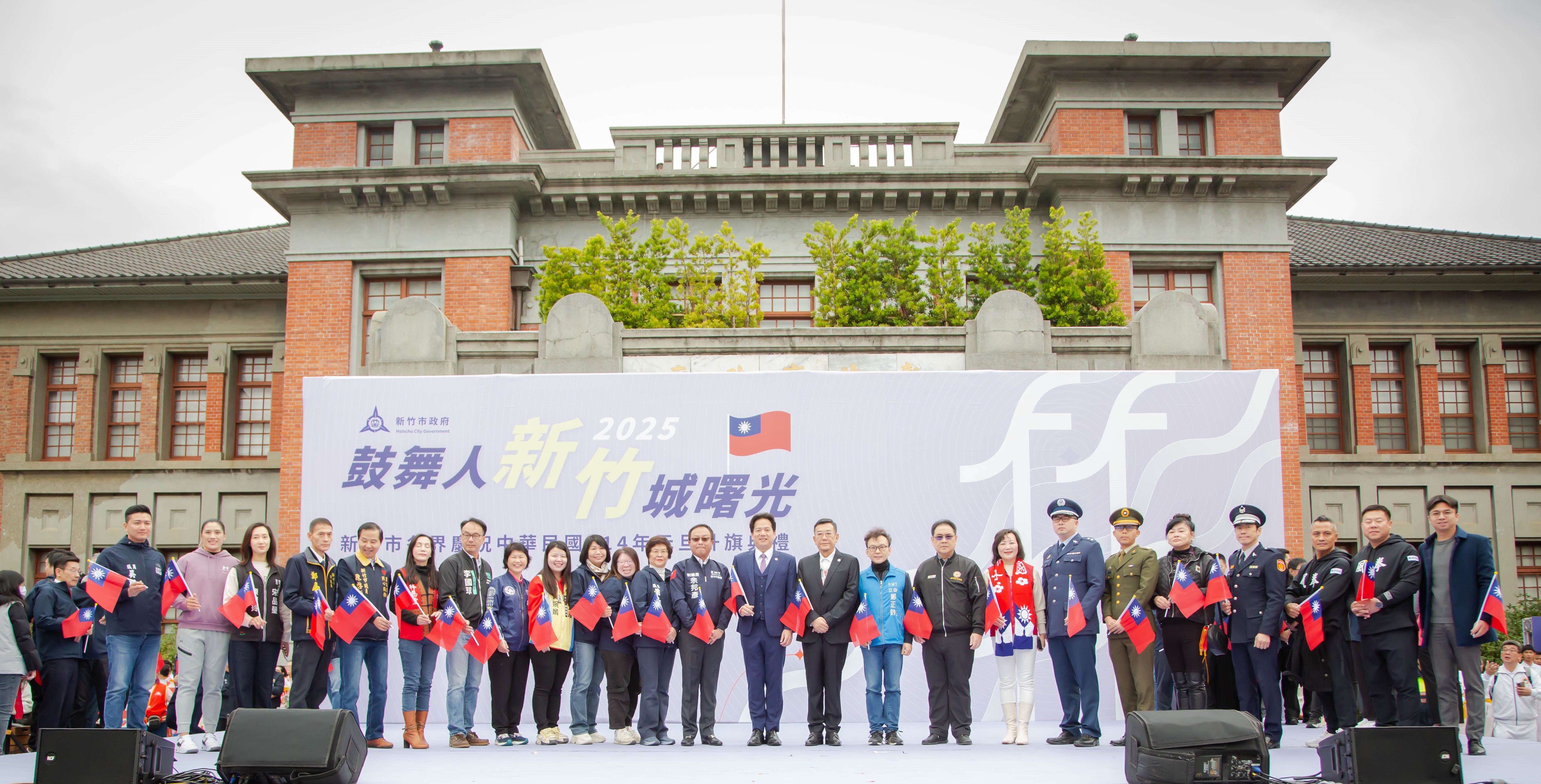 新竹市政府1月1日上午在市府前廣場舉行2025年元旦升旗典禮,代理市長邱臣遠率領秘書長張治祥及市府一級主管,與現場來賓共同迎接新年到來。典禮特別邀請新竹之光拳擊國手陳念琴擔任領唱人,並由沂風室內合唱團及風城青少年管弦樂團伴奏,與市民朋友齊唱國歌。