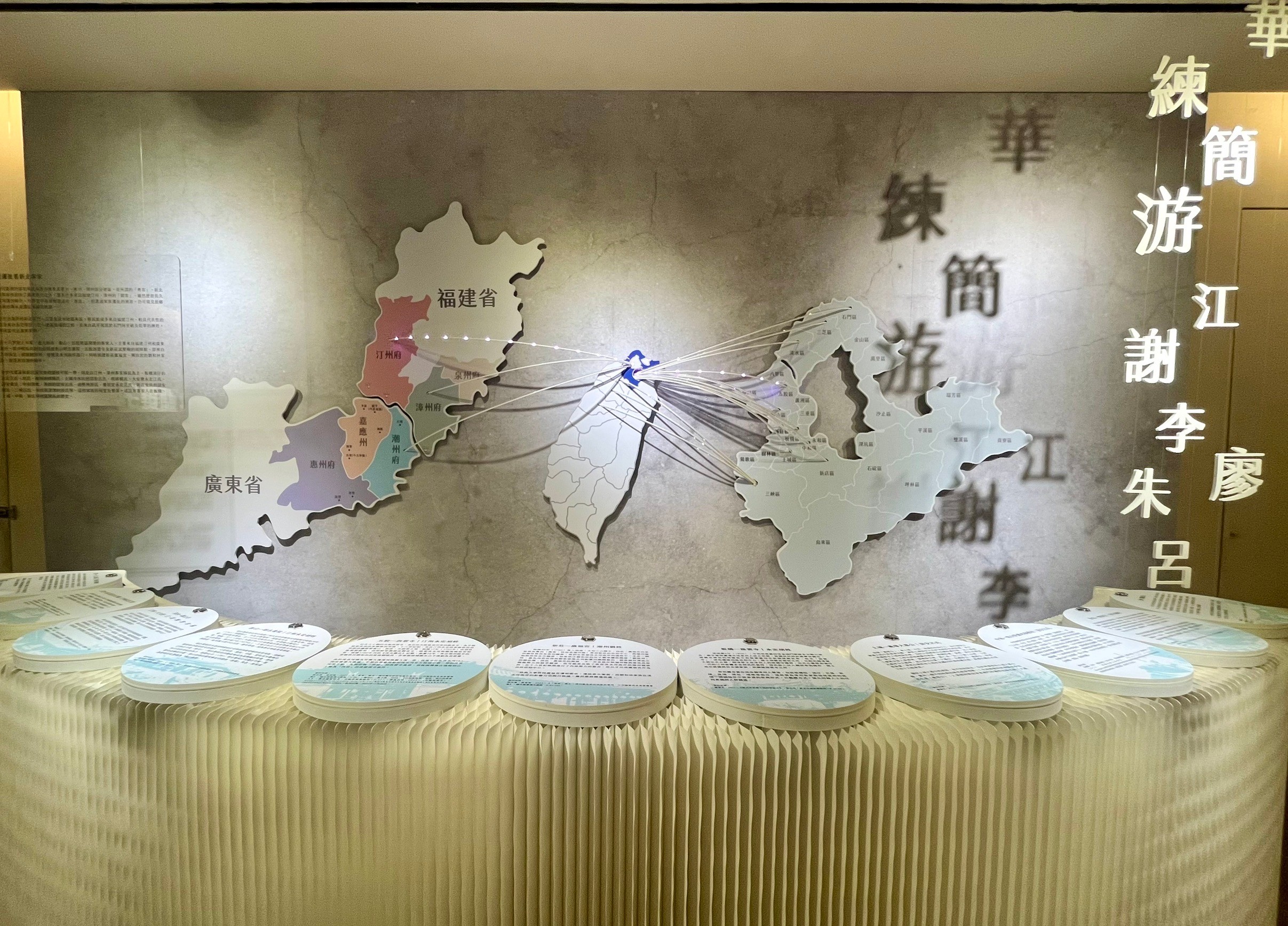 二樓展區最終以新北流域客家輿圖為收納,與大眾宣揚新北客家各區推行政策的同時,亦規劃反饋專區,鼓勵廣納大家對於新北客家想像作為未來發展的建議。期待透過一系列精心的規劃與周邊活動,深化大眾對新北客家的認識、拉近與客家文史的距離。
