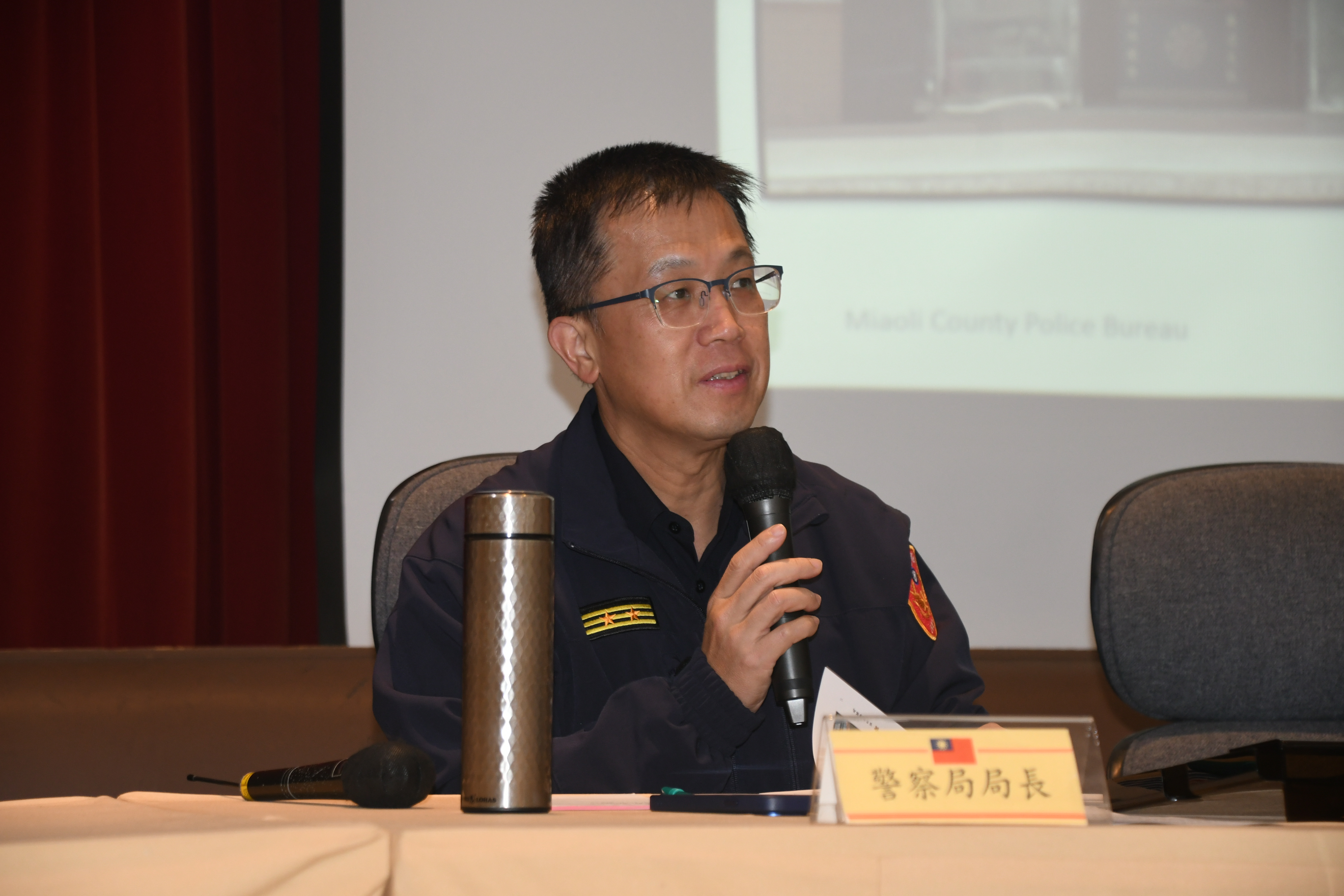 縣長鍾東錦於會中表示:感謝警察局全力執行各項治安工作,尤其結合金融機構關懷攔阻,113年度1至11月份與金融機構共同成功攔阻臨櫃匯款詐騙351件,攔阻金額為2億2541萬元。在交通方面,縣府道安團隊跨機關合作,在113年度「金安獎」獲獎6項。未來也將持續針對「人」、「車」、「路」等三大面向不斷改善精進,提供民眾更舒適完善的生活環境,感謝警察同仁的付出與辛勞,使苗栗成為更幸福、宜居的城市。