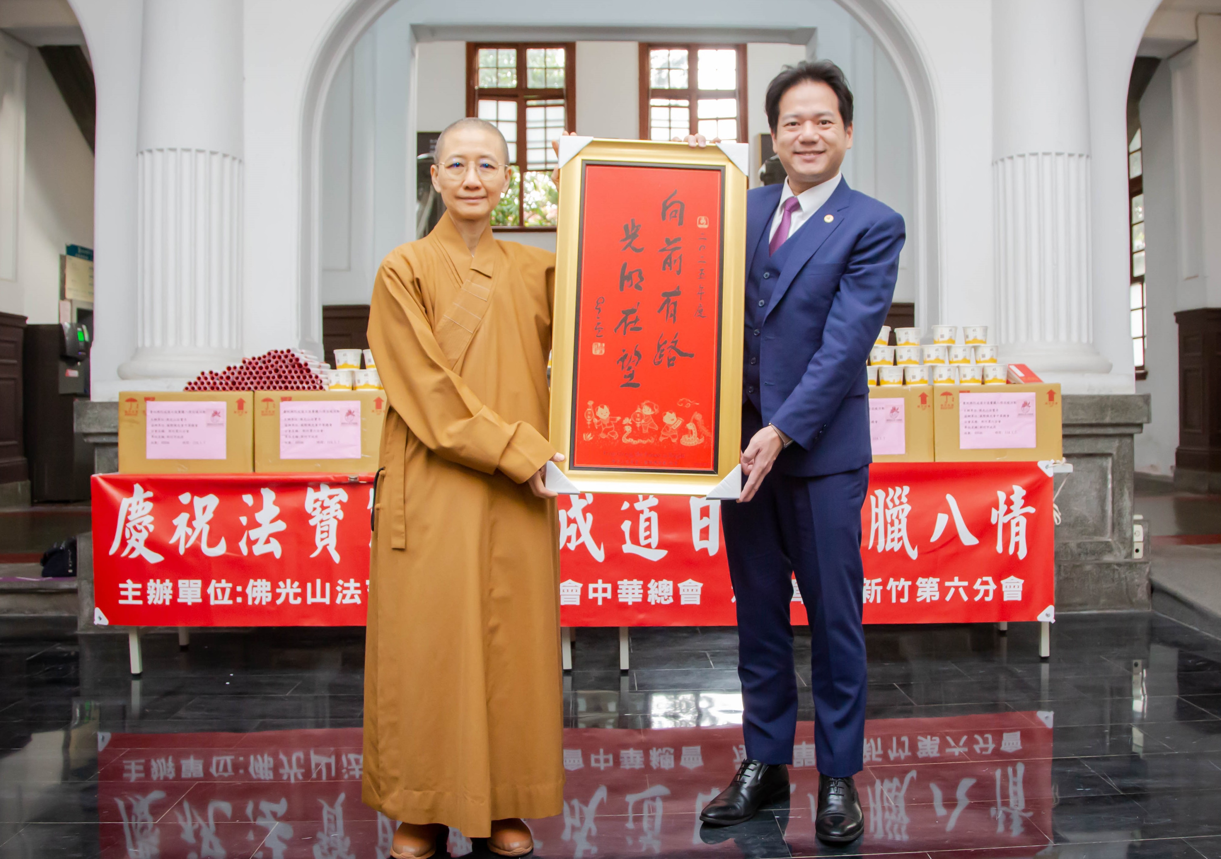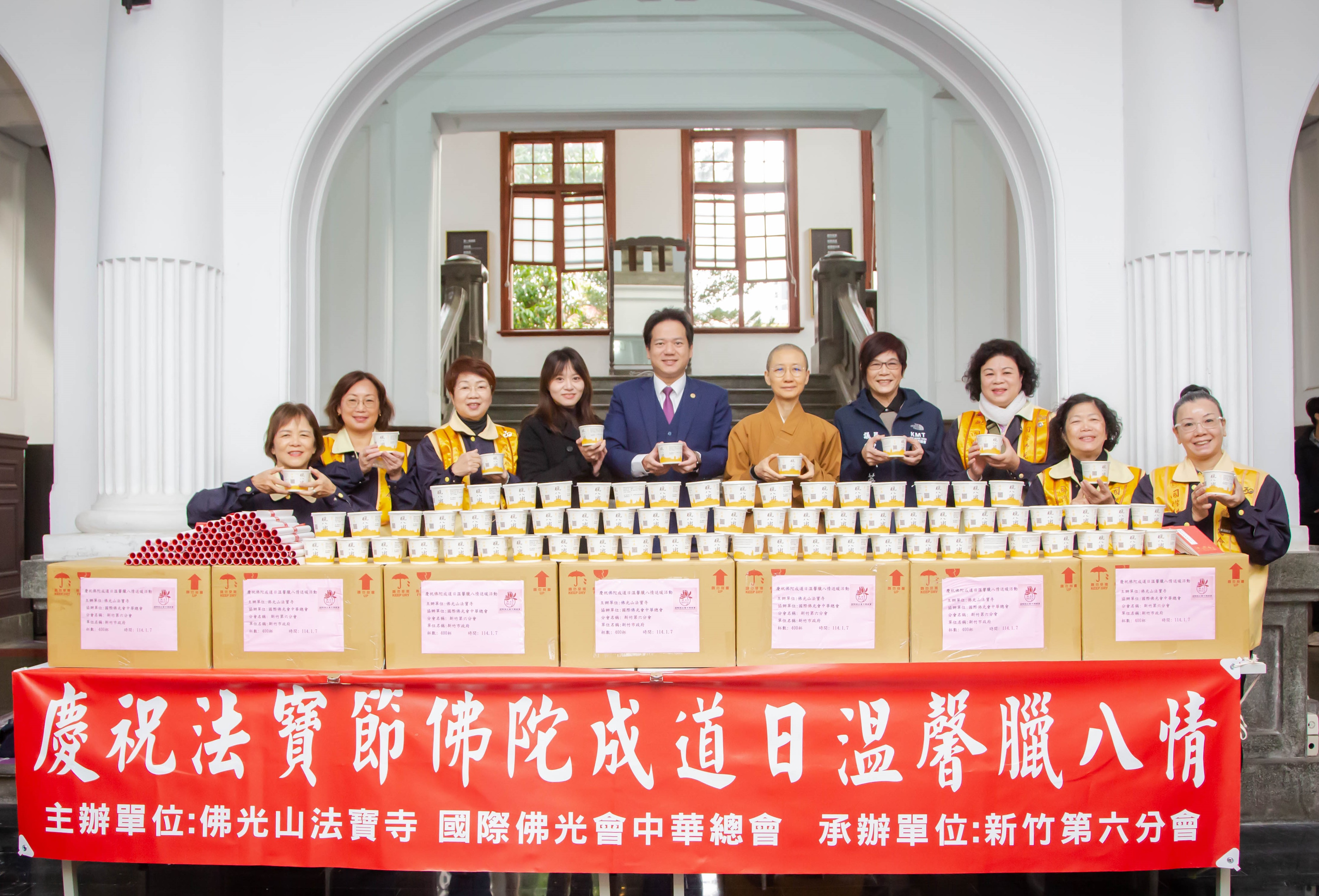 佛光山法寶寺12月7日於新竹市政府大廳贈送市府同仁400杯臘