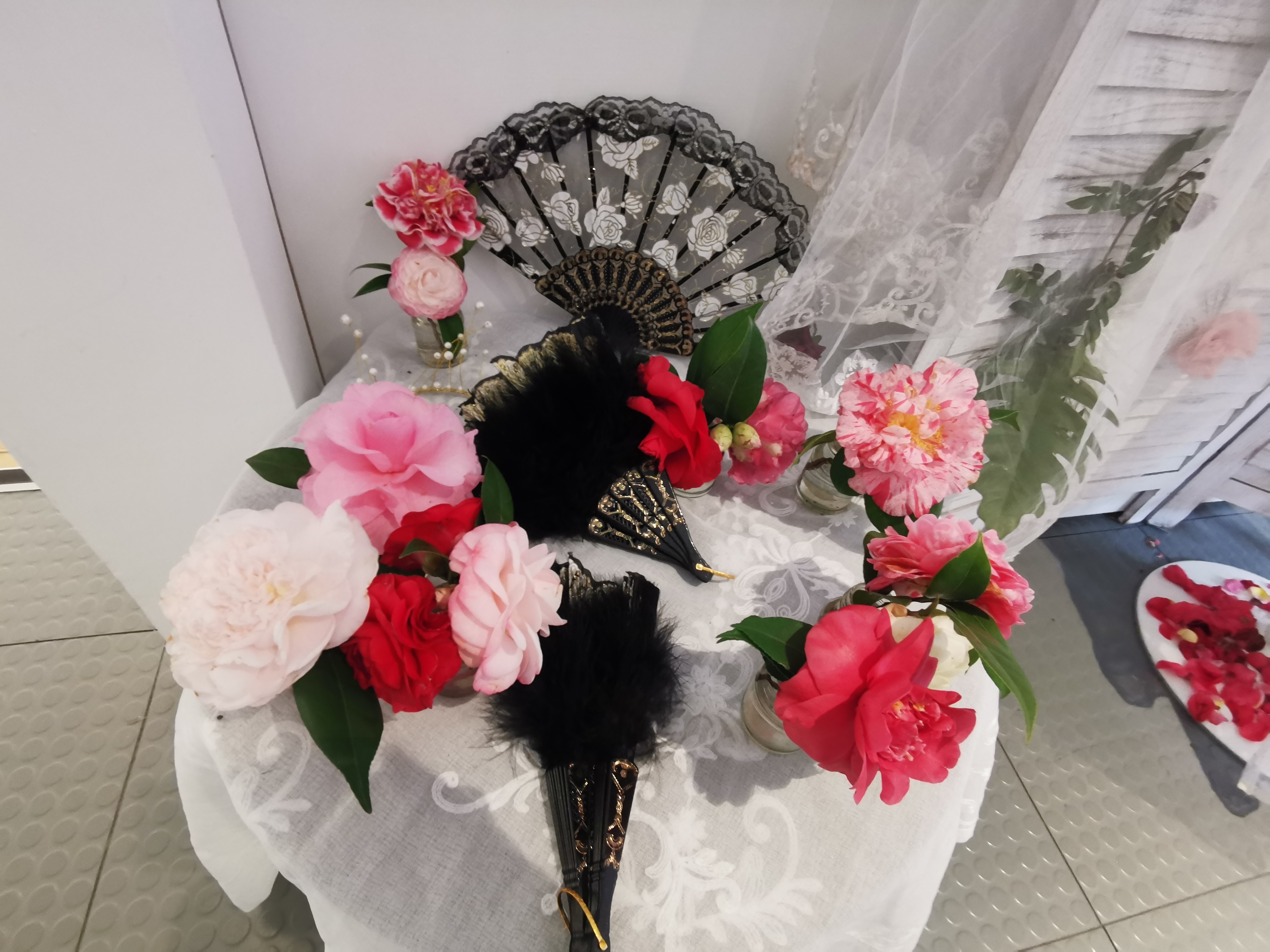新竹縣茶花園藝研究學會范秀英說,匯聚學會70多盆的茶花展出外,還有茶花畫作特展、攝影、纏花及香氛等活動,開幕活動明天(12日)還有一天,現場有人體茶花彩繪、禮服體驗、彩繪擴香石創作、茶花隨身鏡、流沙許願瓶、茶花雕塑實作及禪繞延伸藝術公益闖關等相關手作活動,凡參加活動者即可獲贈茶花苗,歡迎大家把握機會,將茶花的浪漫帶回家。