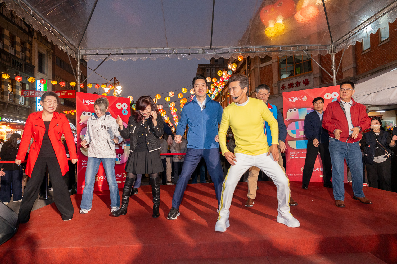 蔣萬安市長與潘若迪一起舞動年貨三十 圖/臺北市商業處提供