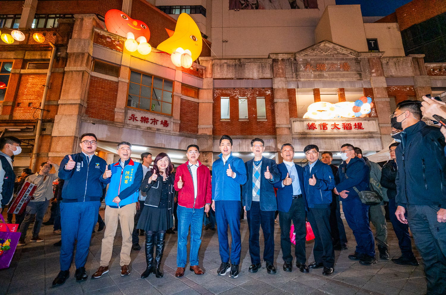 長官與貴賓與巨偶妝點合照. 圖/臺北市商業處提供