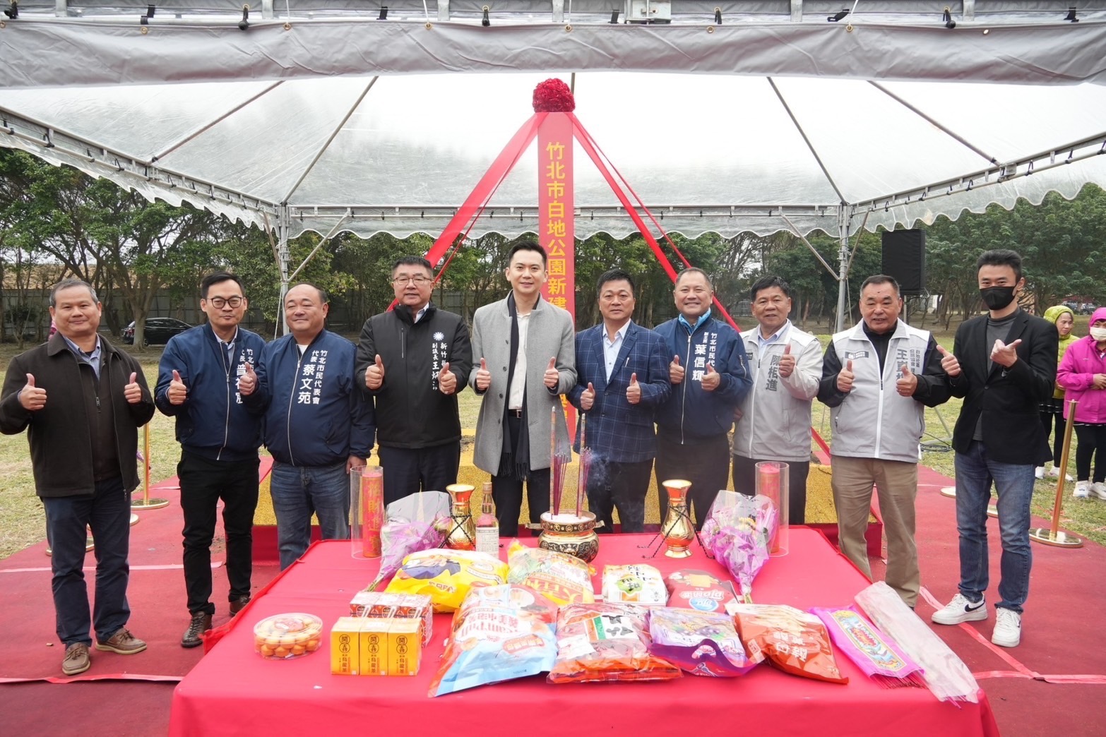 大新竹首座專業輪狀車練習場正式落腳白地,1月15日舉行隆重動土典禮,吸引許多地方要員參與,包括竹北市民代表會主席林啟賢、副主席葉信輝及多位代表,新竹縣議會副議長王炳漢、白地里長陳相進及多位里長等,齊聚一堂,共同見證這項重要的里程碑。這是竹北市公所在新社兒15樹網公園後,再次於西區傾力打造的特色公園。