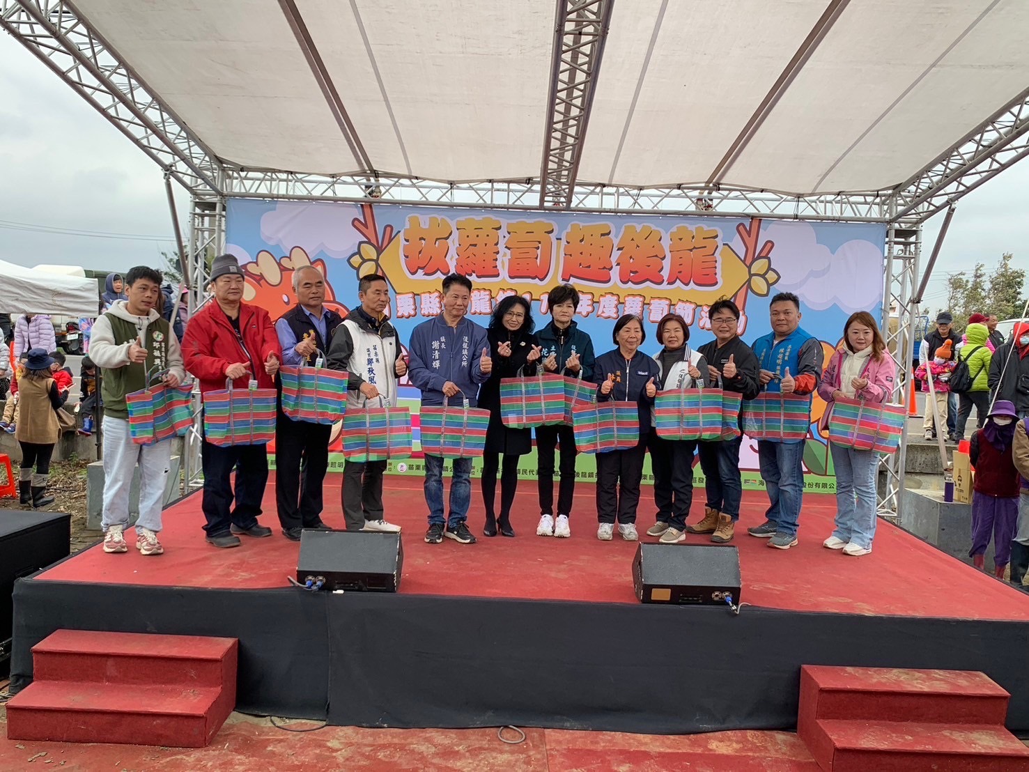 苗栗縣後龍鎮首次推出的蘿蔔節活動,「拔蘿蔔 趣後龍」於 114 年 1 月 19日上午熱鬧開拔,並透過多樣化的活動設計,以蘿蔔為主題,搭配在地蘿蔔美食品嘗,應景蛇年燈籠 DIY 及總價超過千萬元的農機具展示,呈現獨特的食農教