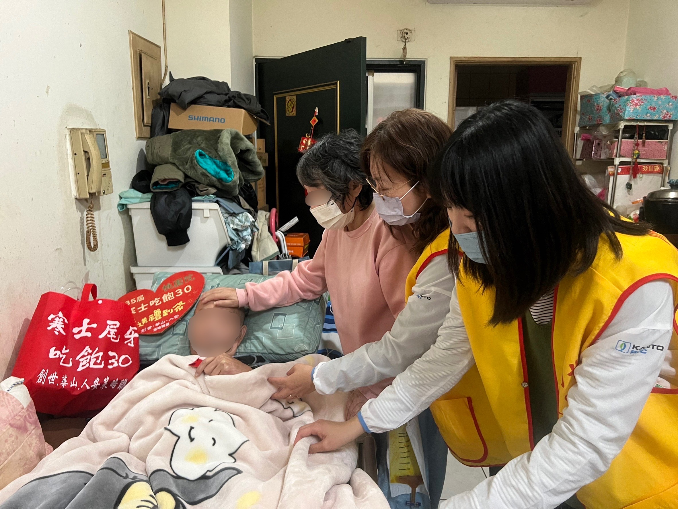 現年67歲的曾先生自101年中風後臥床至今,曾太太及女兒分別為肝臟、腎臟疾病患者,面對長期照護及自身疾病的巨大壓力,讓一家人深陷於困境之中,112年創世桃園院得知此案狀況後,立即展開到宅服務。每月定期探訪,關心一家人的身體狀況,提供原床泡澡服務,並針對不同時期的疾病給予護理指導,以及需要的物資如尿布等,減輕經濟壓力,一同度過艱難時期。