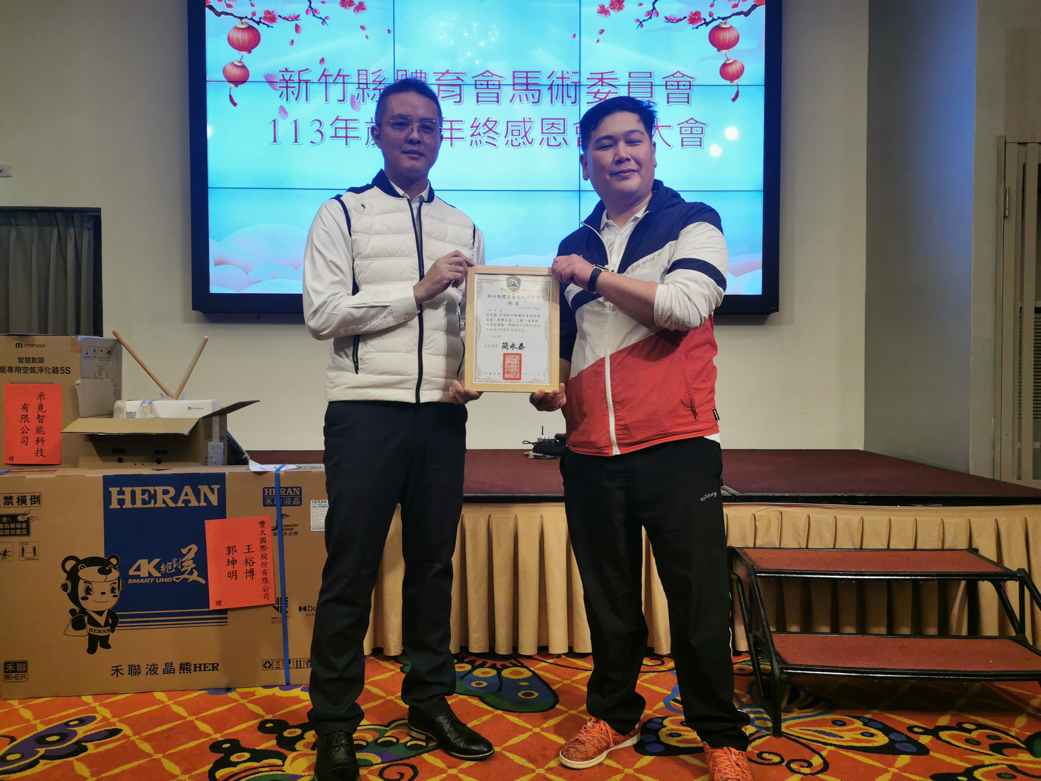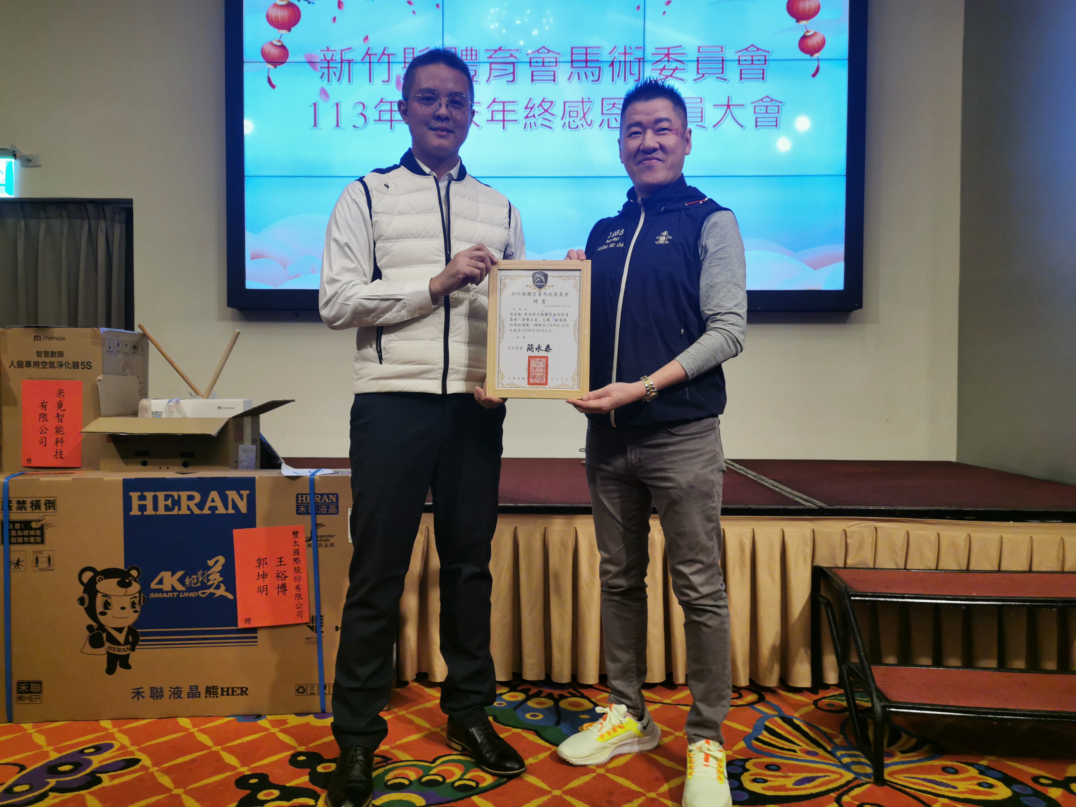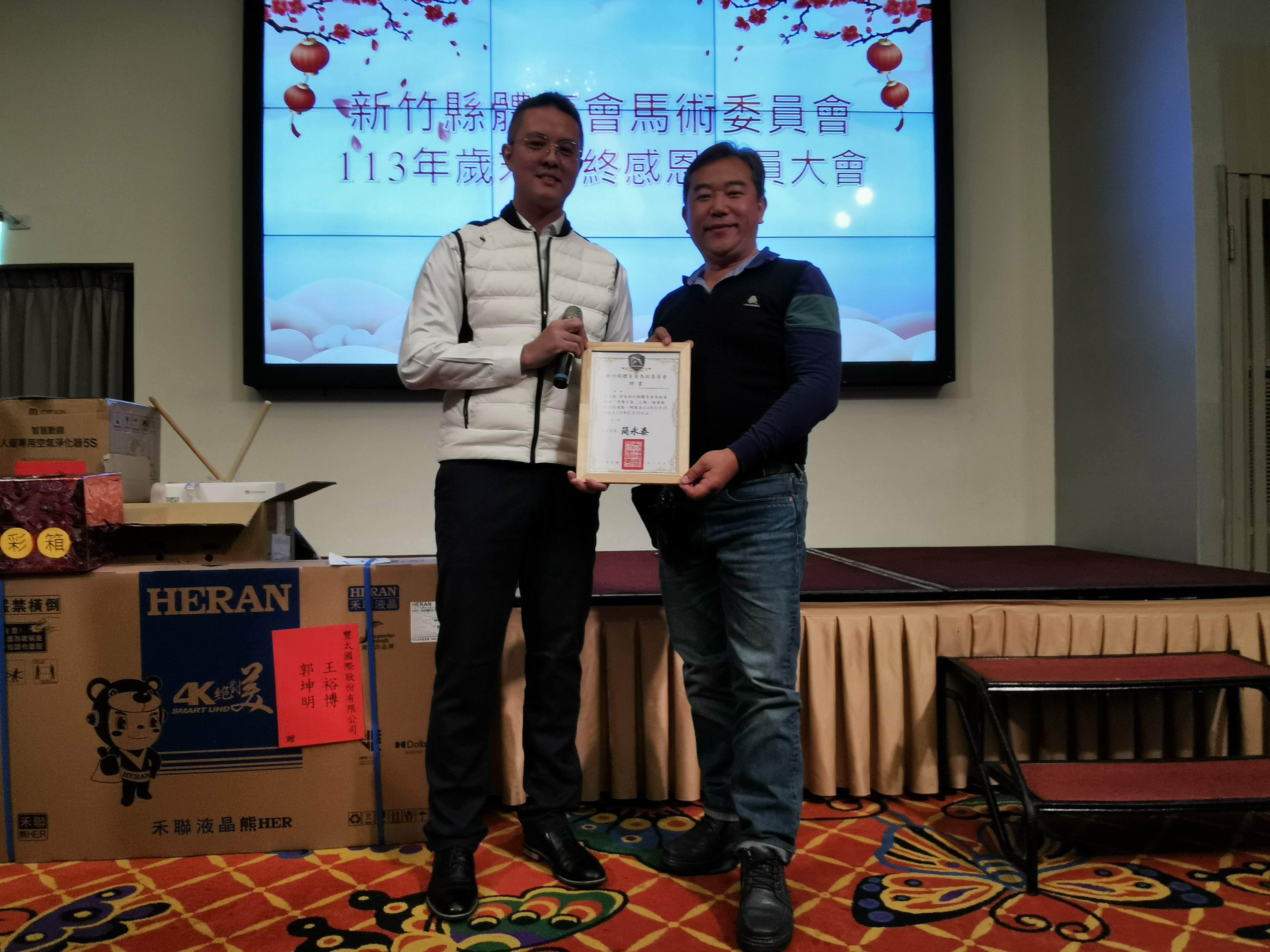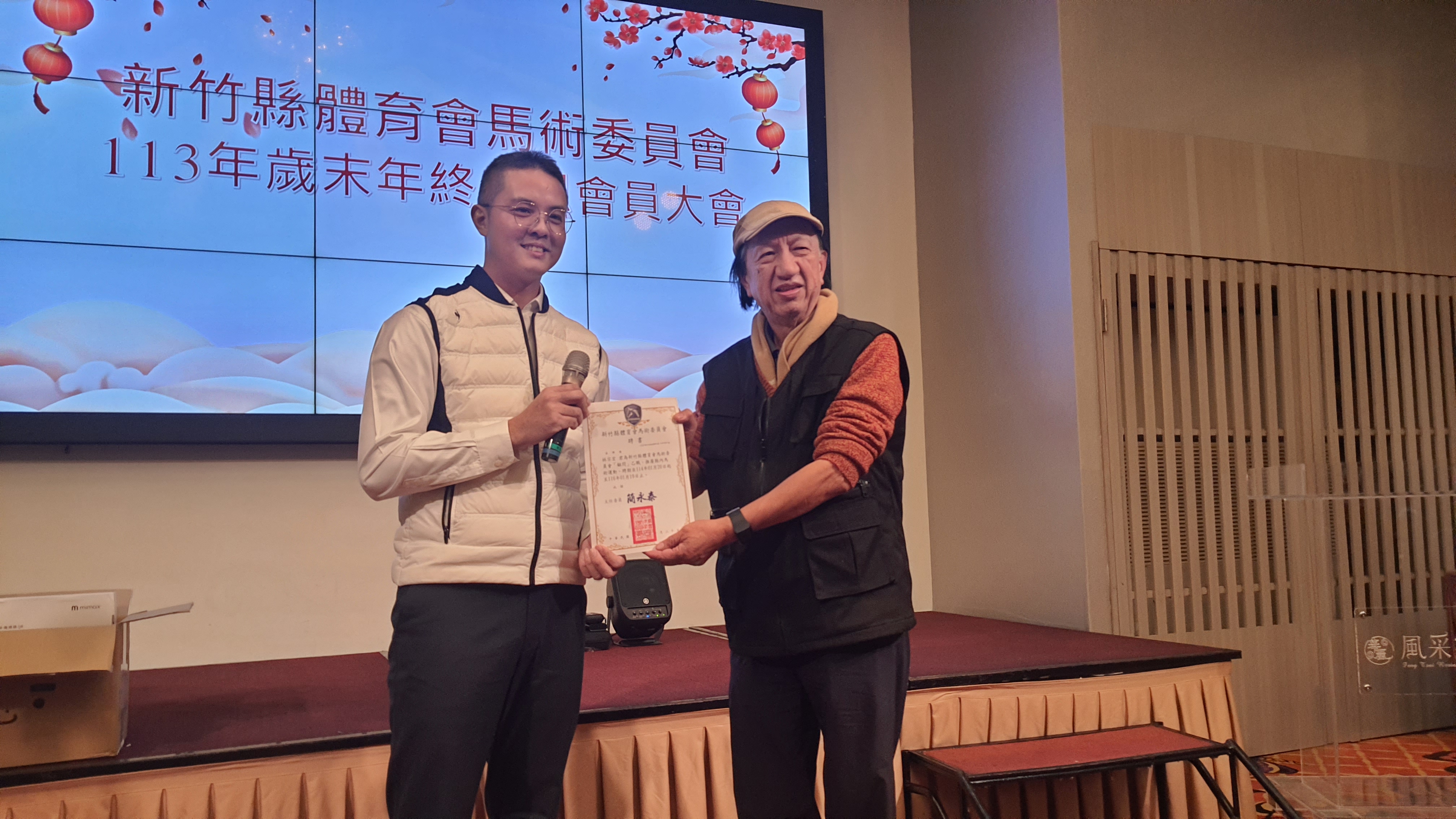 新竹縣體育會馬術委員會於1月20日在風采宴會館-維多利亞廳舉行歲末年終感恩會員大會曁主委改選交接及馬術有功人員頒獎餐會,