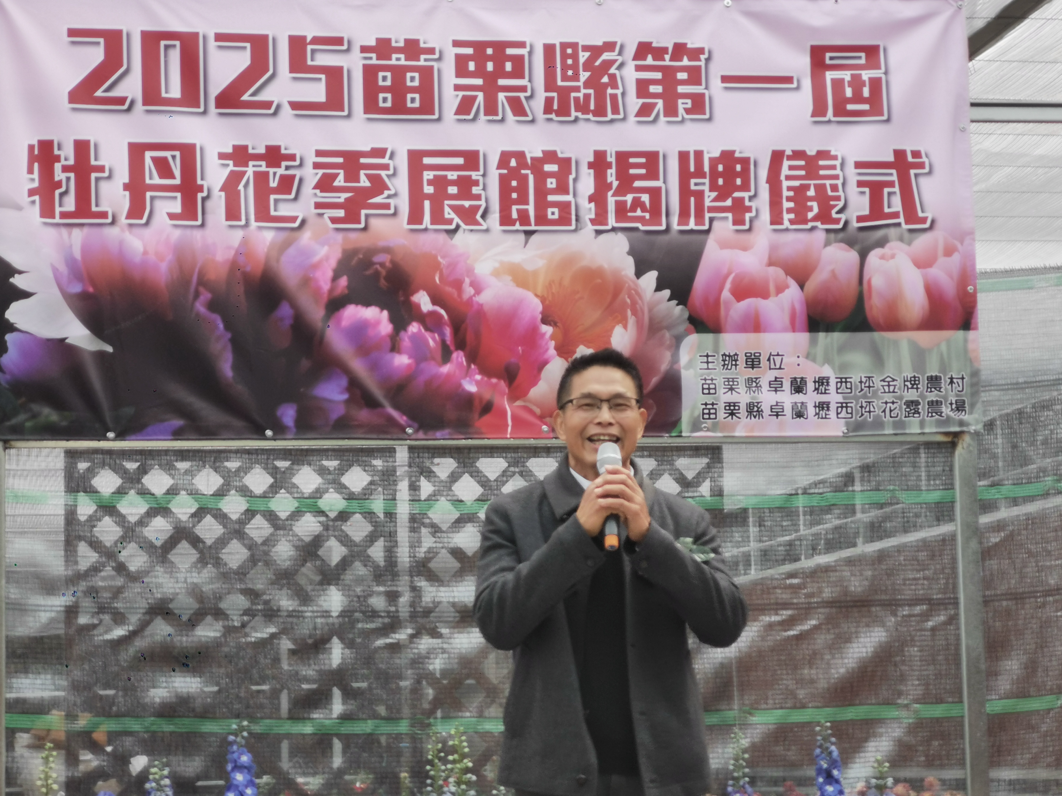 卓蘭鎮花露休閒農場打造全台平地唯一的牡丹花館,1月23日上午揭牌開幕,種植的牡丹花艷麗迷人,引人佇足,亦為金牌農村壢西坪休閒農業區再添亮點。