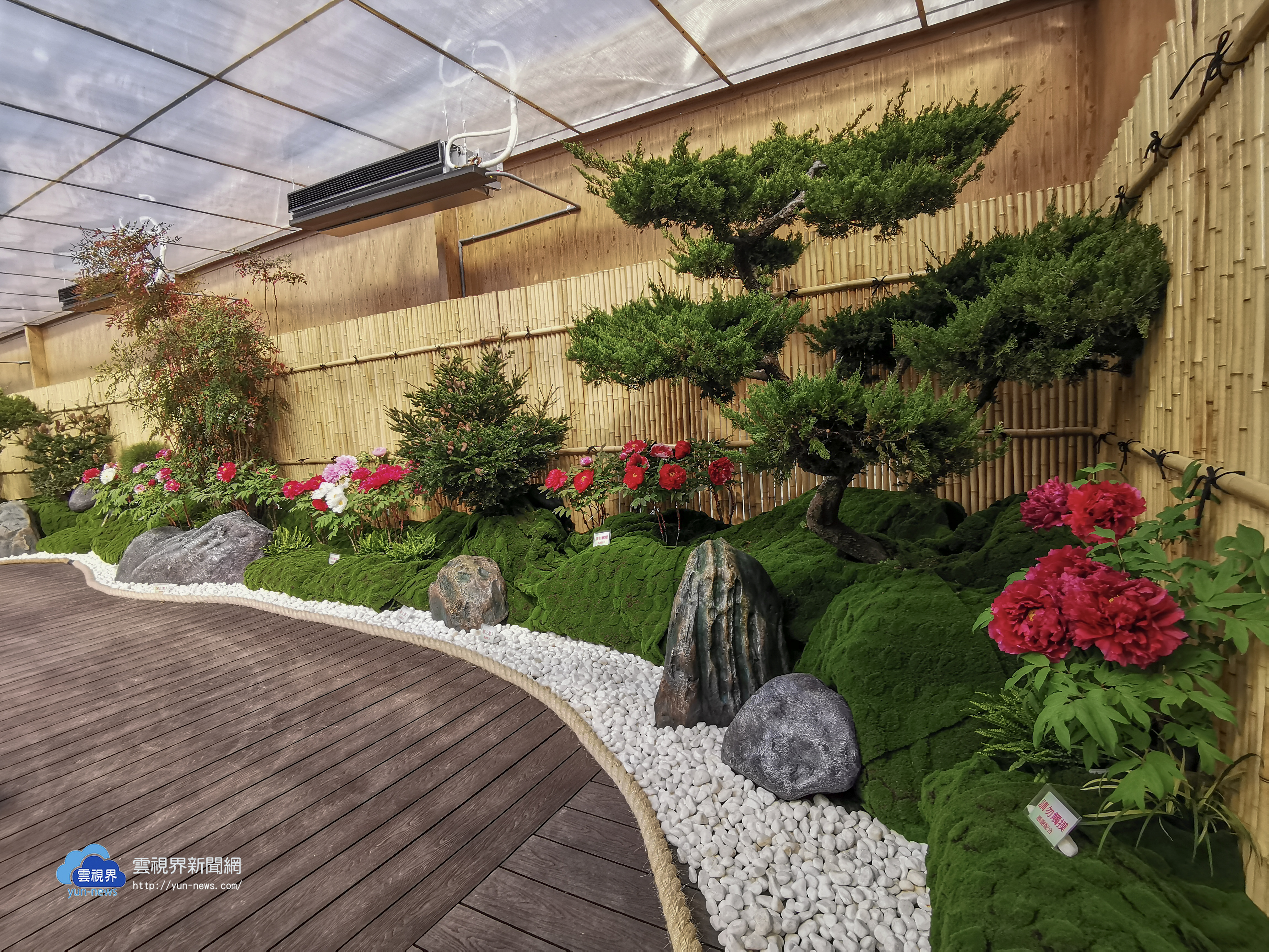 場長陳基能特地從日本引進600棟牡丹花,融合日式庭園設計和在地文化,並利用冷庫調控花期方式,成功在平地栽植成功,打造極具特色的牡丹花館。